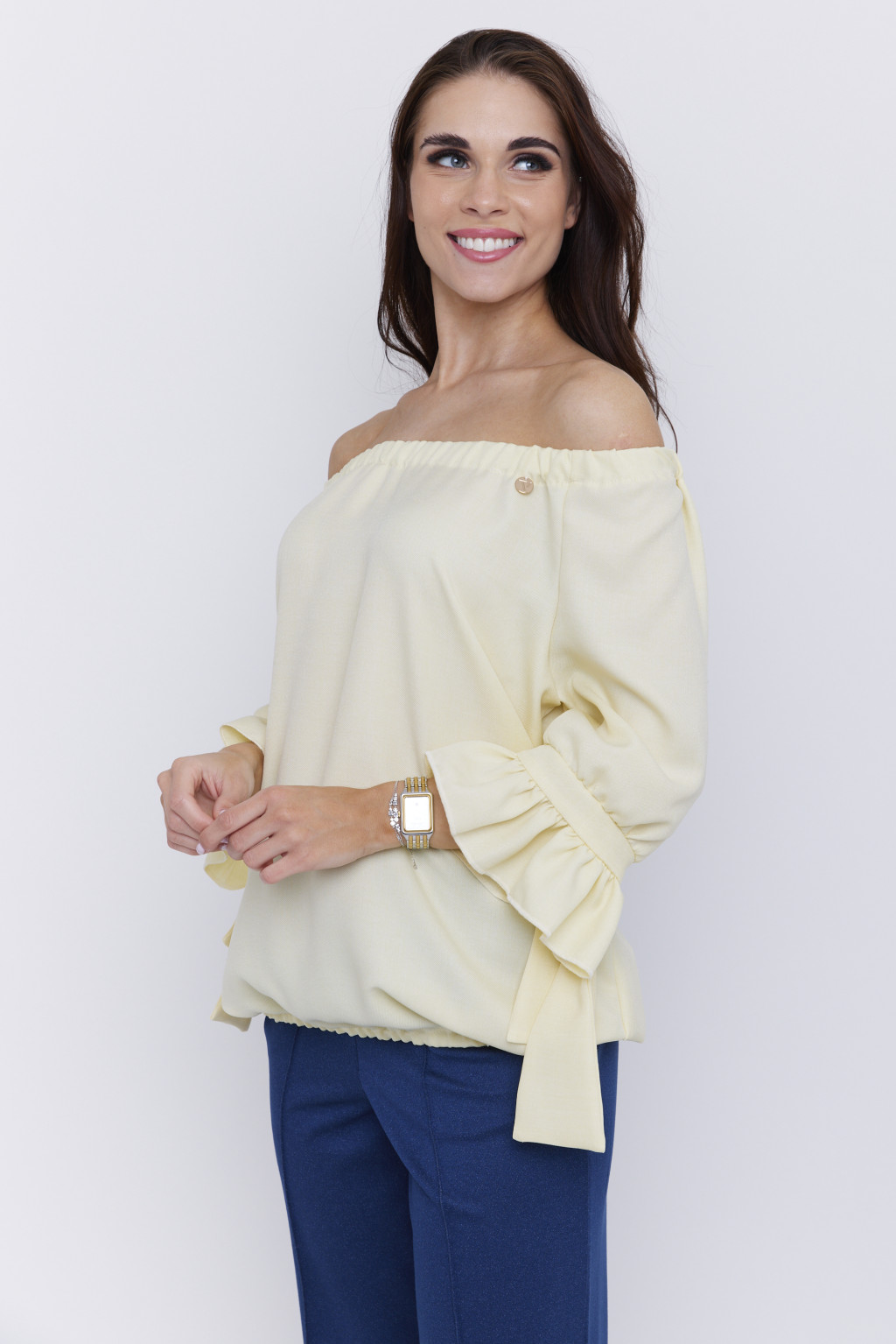 Fanni női tunika, váll nélküli, fodros ujjú, gumis aljú tunika, sárga,S-M,Tara x Viktori, Curve Fashion
