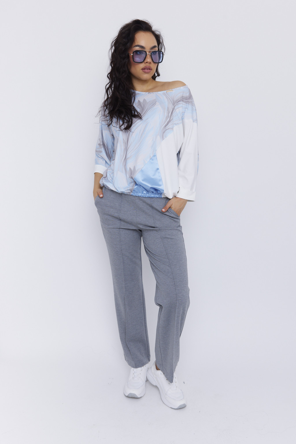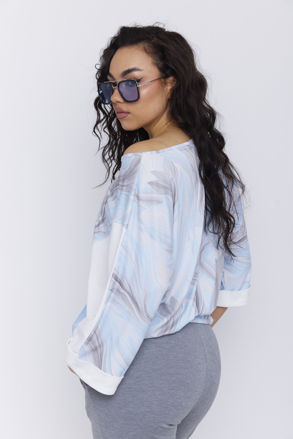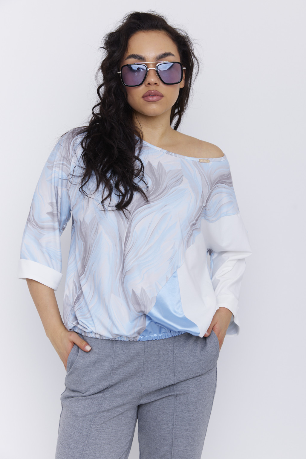 JENINE női felső – T-ujjú, gumis aljú fazon,mintás,S-M,Tara X Viktori, CURVE