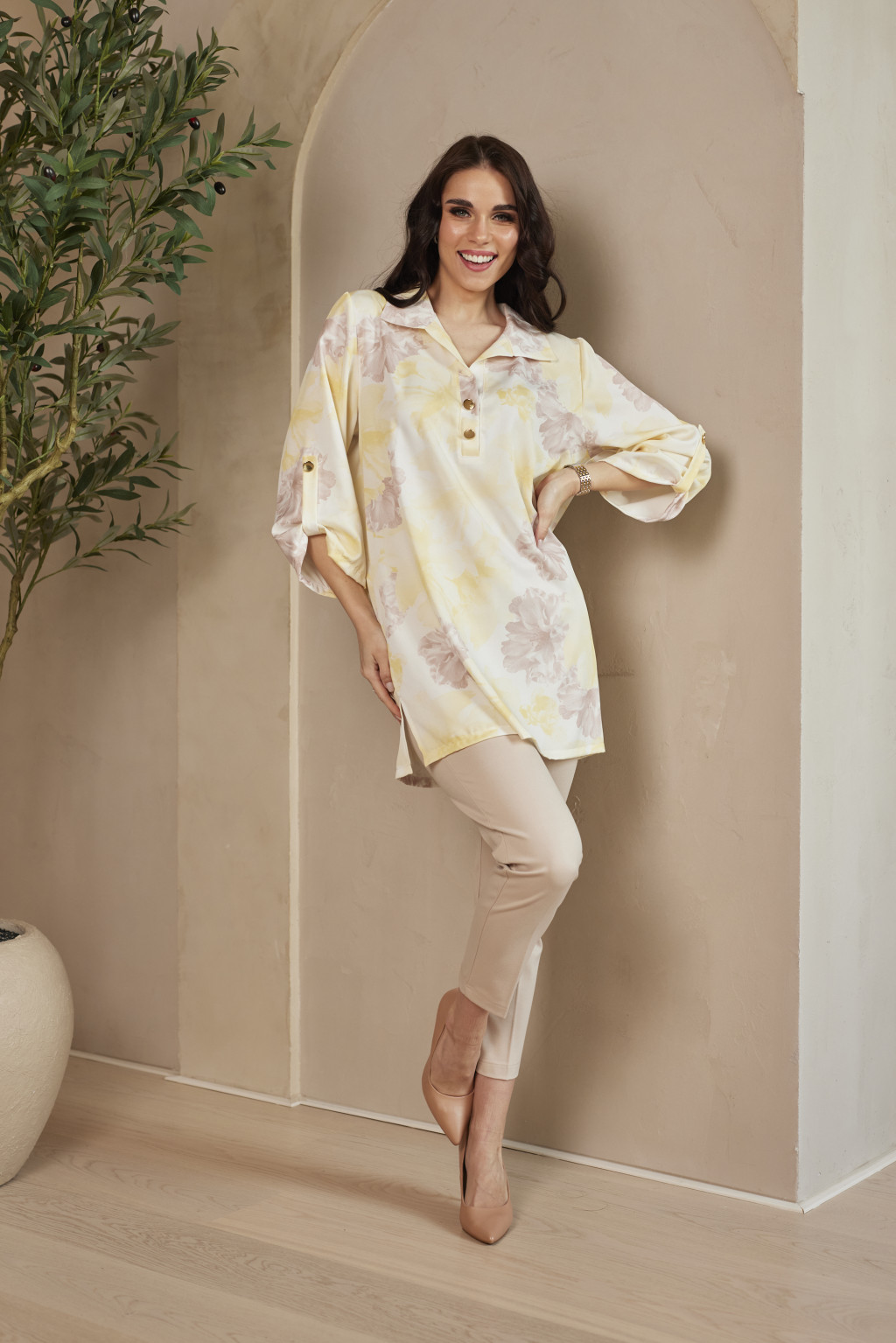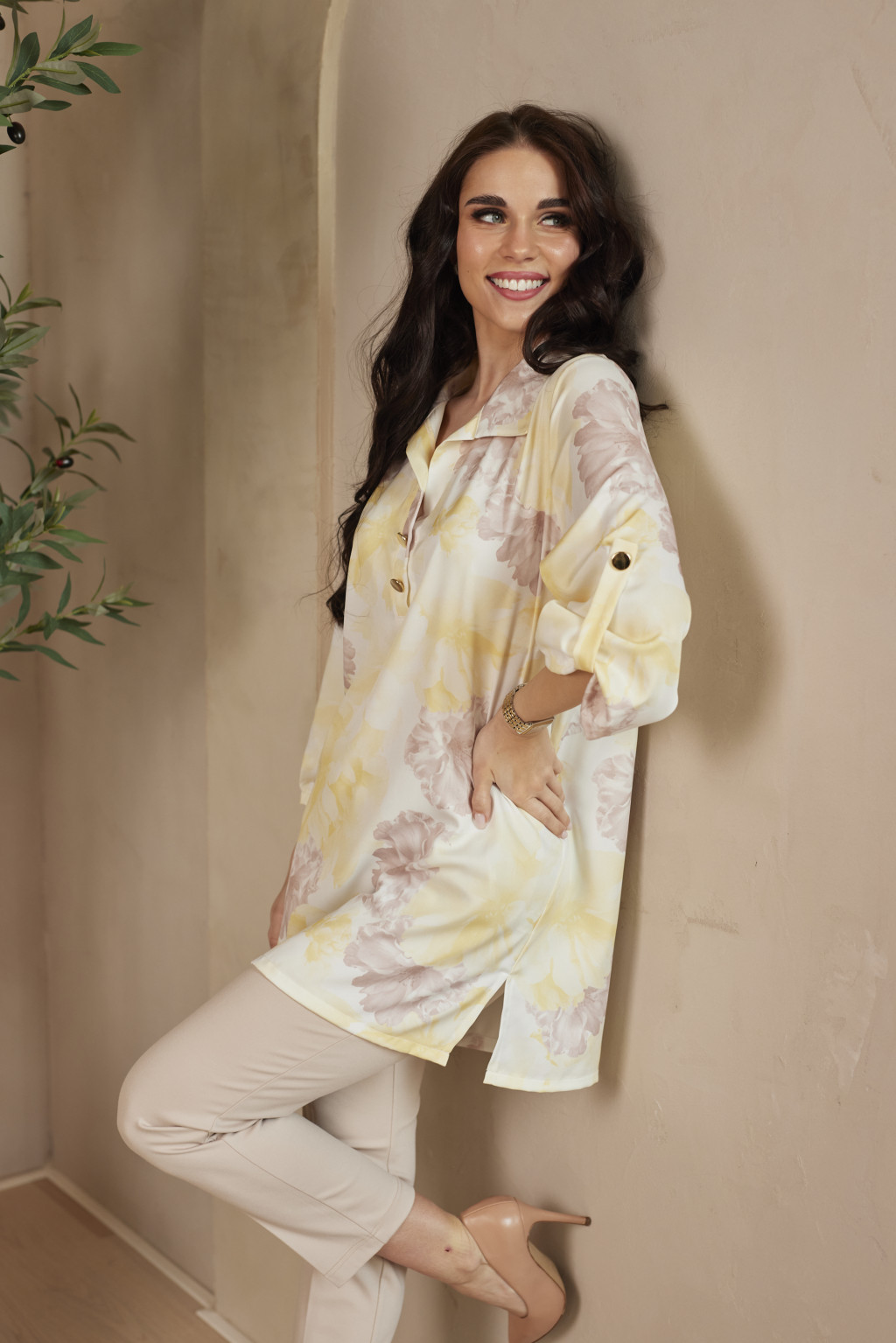 Henriett női tunika gallérral és gombos elejével, elegáns mintás dizájnnal,S-M,Tara X Viktori