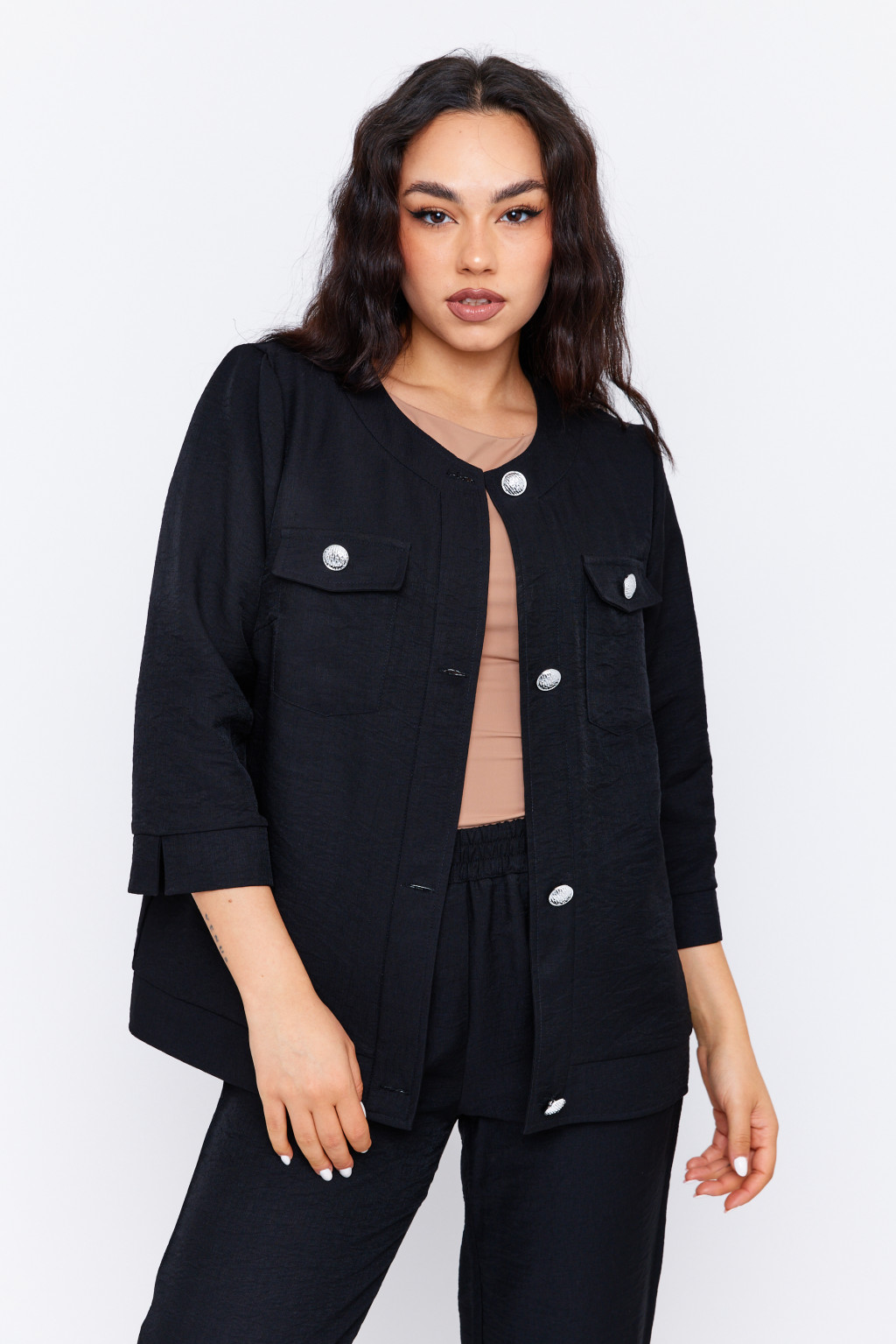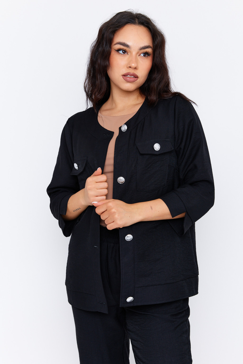 Az ABRIELLE női blézer stílusos és sokoldalú darab, amely remekül kombinálható mind elegáns, mind lazább szettekkel. A hat díszgombos kialakítás és a mellzsebek klasszikus megjelenést biztosítanak, míg a háromnegyedes ujjhossz kényelmes viseletet garantál a tavaszi–nyári szezonban. Karcsúsított szabása és kerek nyakkivágása nőies sziluettet formál, miközben kényelmes és légáteresztő anyagból készült. Elérhető több színben.