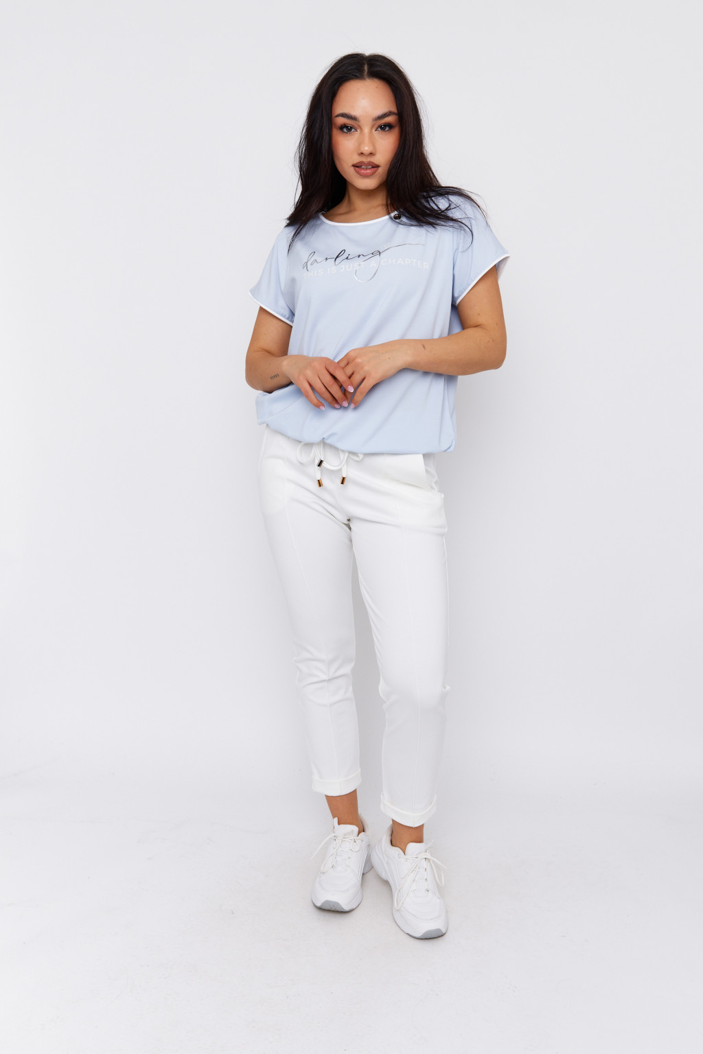 A MILDA tunika tökéletes választás a kényelmes, mégis divatos megjelenéshez. A környakú kialakítást elegáns szatén szegély egészíti ki, míg a derékrészen található állítható megkötő finoman hangsúlyozza az alakot. Rövid ujjú, lezser fazonja miatt ideális a hétköznapokra, de sportosan elegáns szettek részeként is megállja a helyét. A „Darling, this is just a chapter” felirat inspiráló részletté teszi a megjelenést. Párosítsd farmerrel vagy sportos nadrággal a laza, trendi összhatásért.