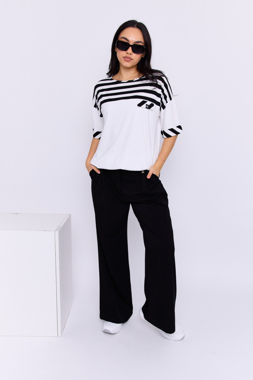 Pamela női nadrág – elegancia és kényelem modern köntösben. A Demia női nadrág a Tara x Viktori fő kollekció stílusos darabja, amely a klasszikus eleganciát ötvözi a modern szabásvonalakkal. A magas derekú kialakítás kiemeli a nőies sziluettet, míg a rakott részletek finoman gazdagítják a megjelenést. A bő szárú szabás kényelmes és sikkes viseletet biztosít, bármilyen alkalomra. Tökéletes választás elegáns blúzzal vagy egyszerű felsővel, ha letisztult, mégis figyelemfelkeltő outfitre vágysz.