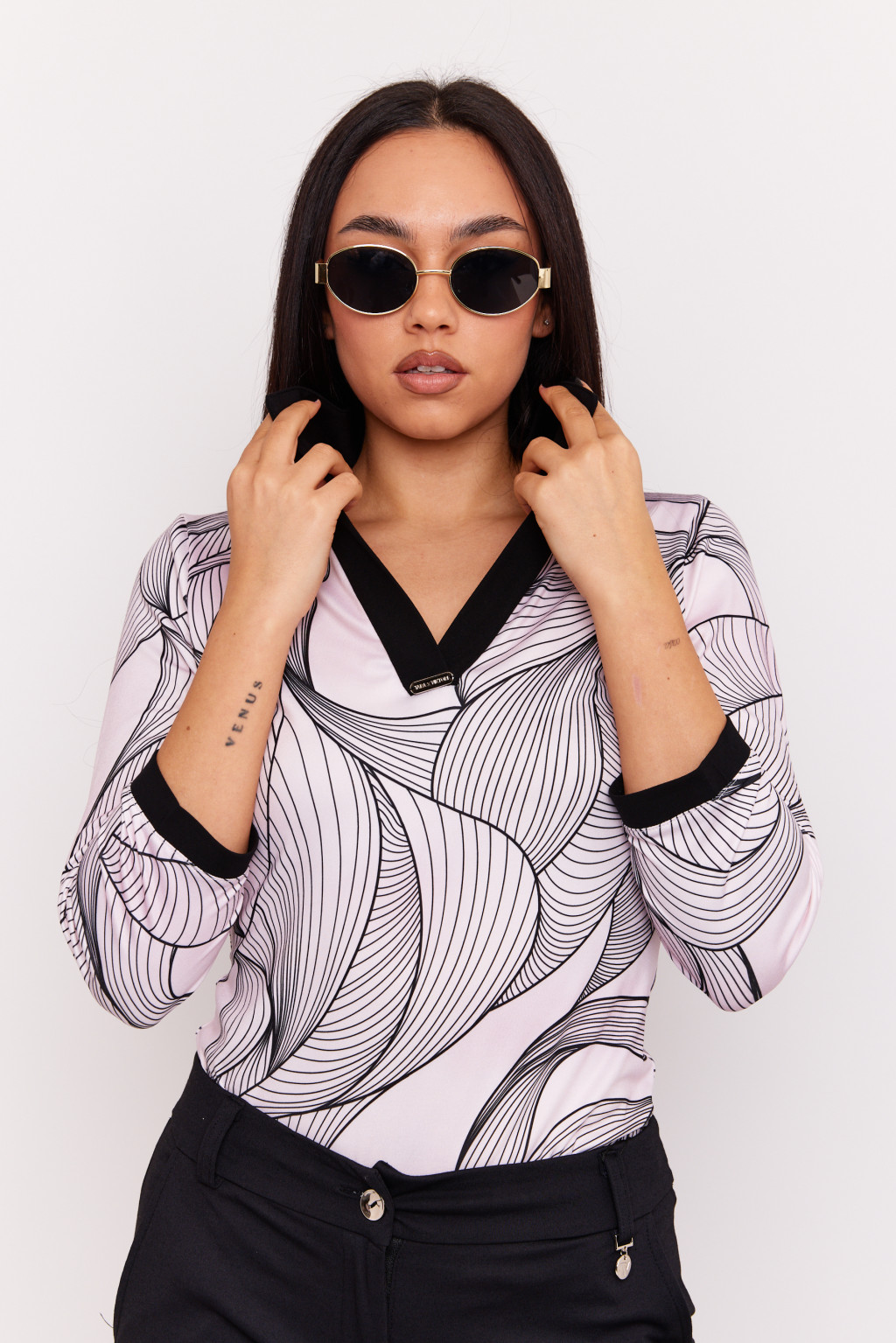 Napoli női felső, V-kivágással és gallérral, Tara x Viktori, mintás,S,Young & Free Kollekció