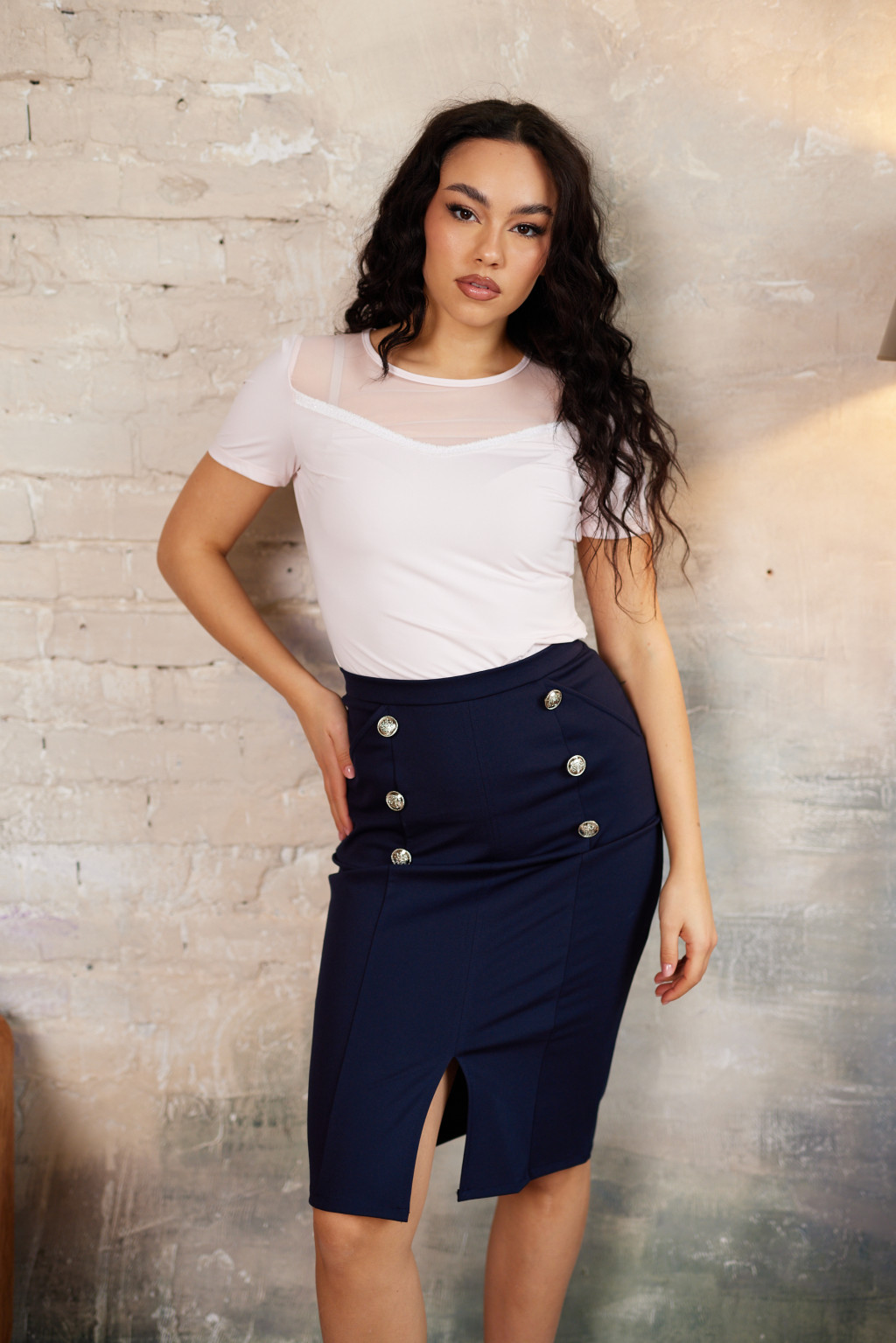 Borbia women’s top – mesh-detailed, short-sleeve, fitted elegant T-shirt,Tara x Viktori, Young & Free Collection