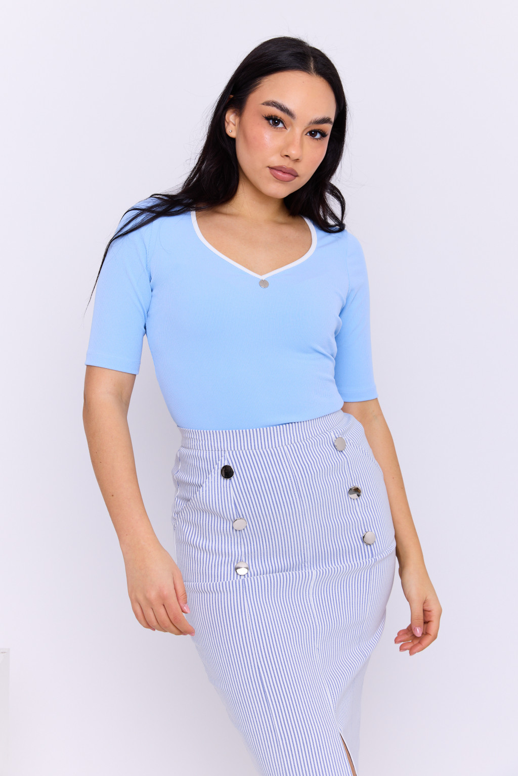 Hedinke women's top Curved V-neck top, Tara x Viktori