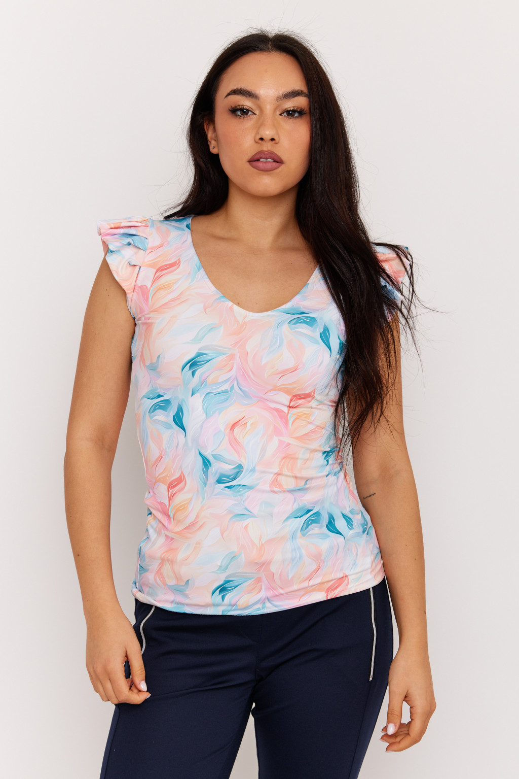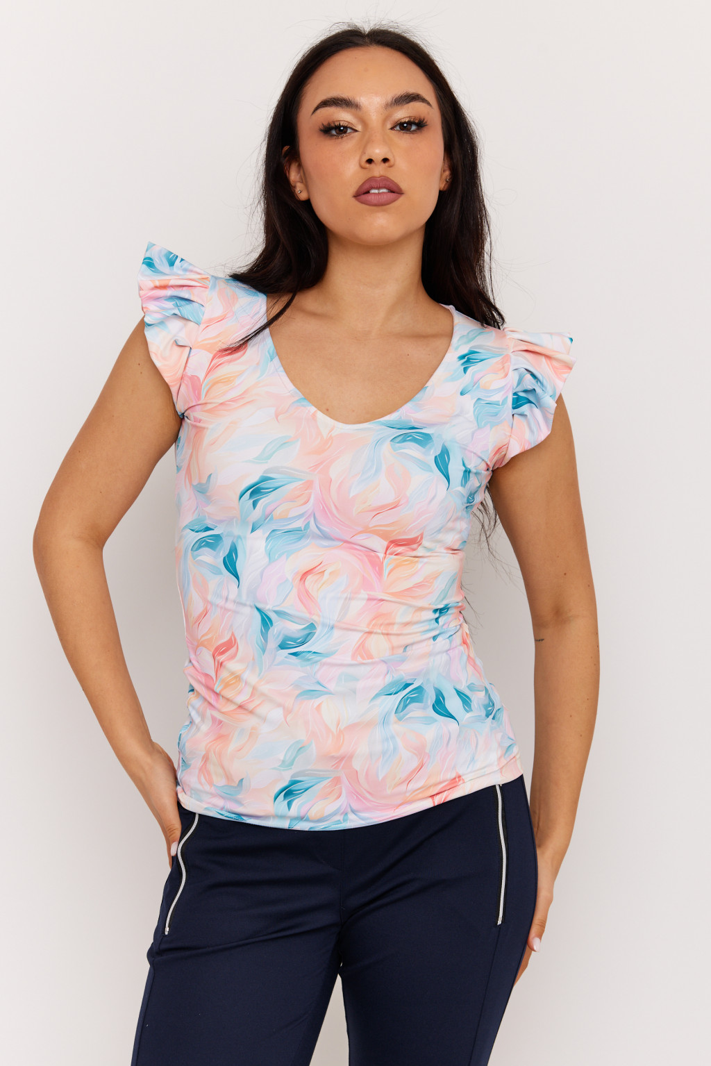 Smaragd női póló rakott vállú, V-nyakú női póló,mintás,S,Tara x Viktori