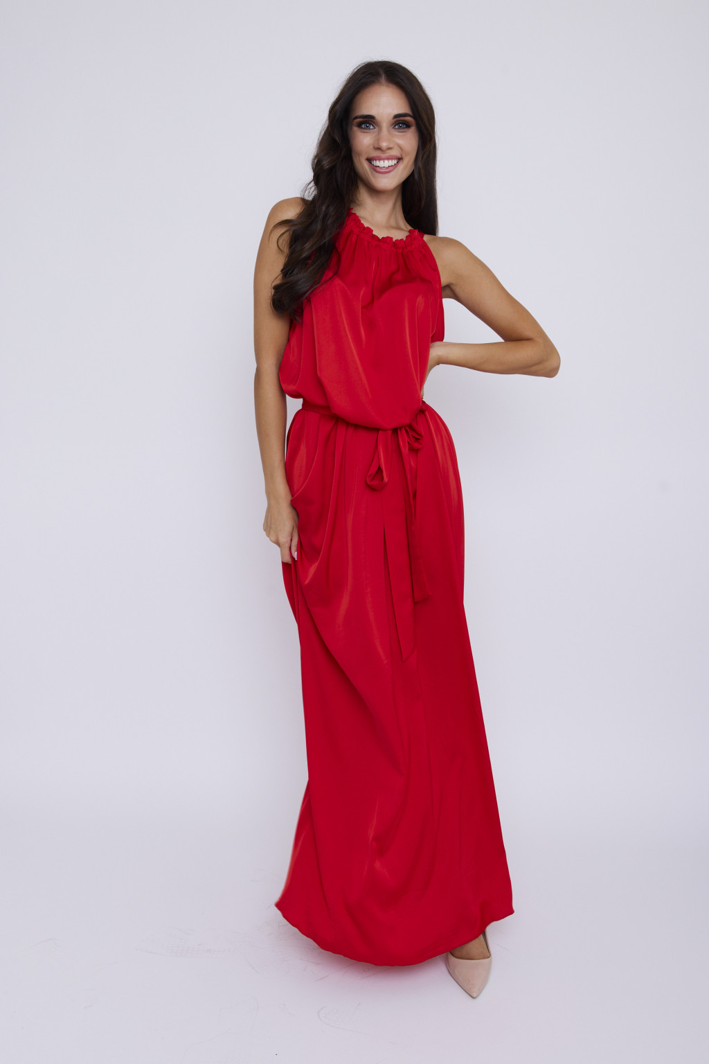 Miami women's dress, gathered-neck tie-waist long dress, Tara x Viktori, Young & Free Collection