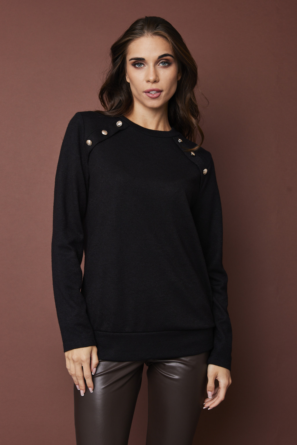 A SALYSSA női pulóver egy kényelmes, stílusos darab az őszi-téli szezonra. Kötött anyaga kellemes viseletet biztosít, miközben a vállrészen elhelyezett 6 dekoratív gomb különleges, mégis visszafogott megjelenést ad. A hosszított, bővebb fazon kiválóan kombinálható nadrággal vagy leggingsszel is, így tökéletes választás a hétköznapokra és az elegánsabb alkalmakra is.