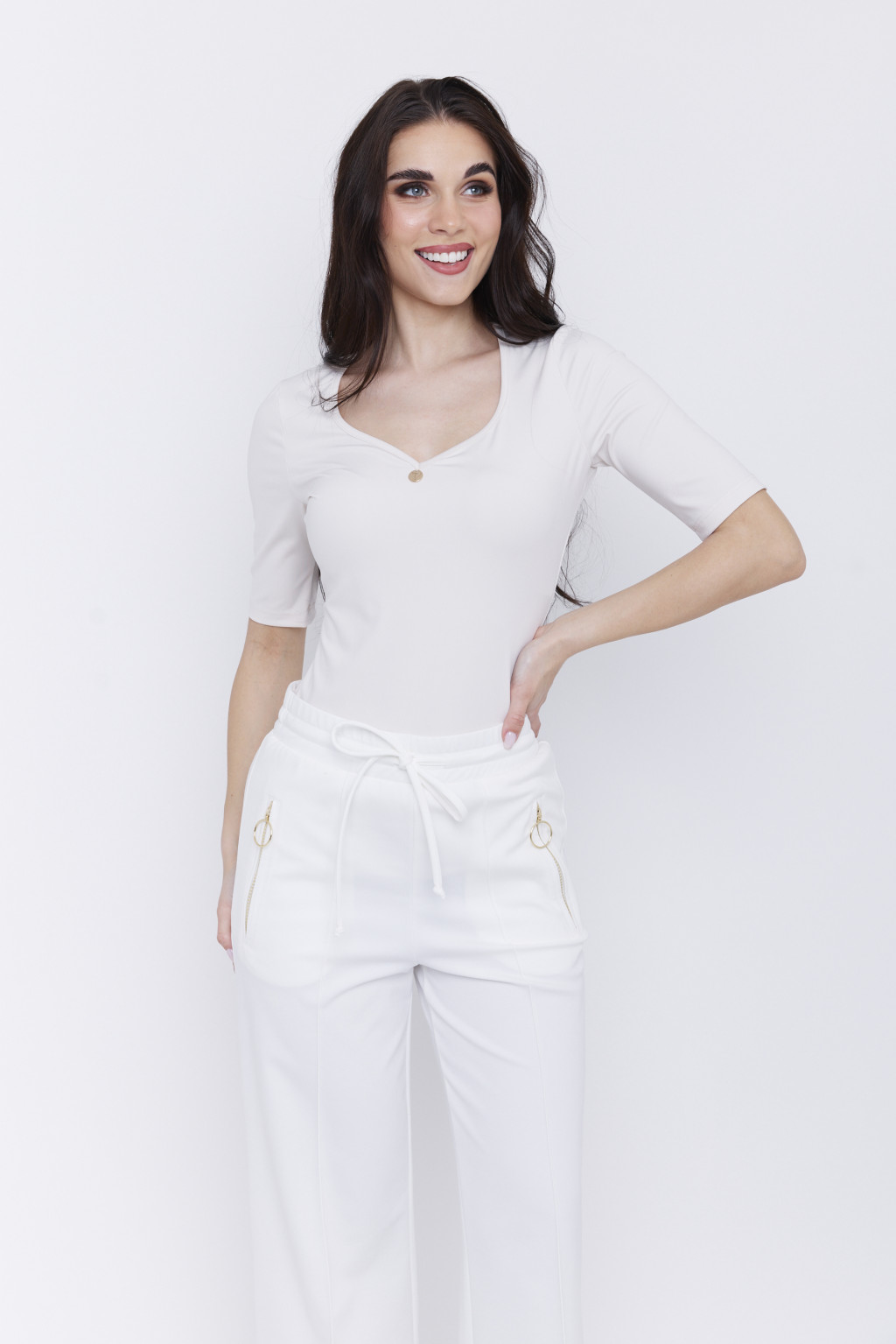 Ha a klasszikus és hétköznapokban is elegáns, nőies vonal mellett tennéd le a voksod. Testhezálló fazonú póló. Rollni pánttal ívelt nyakrész díszíti. Letisztult és nőies fazon, a hétköznapokon farmerrel, az alkalmakon elegáns szoknyával/nadrággal viselve tökéletes választás. Polyamid anyagból készítjük, ami egy rugalmas pólóanyag, amelynek van tartása.