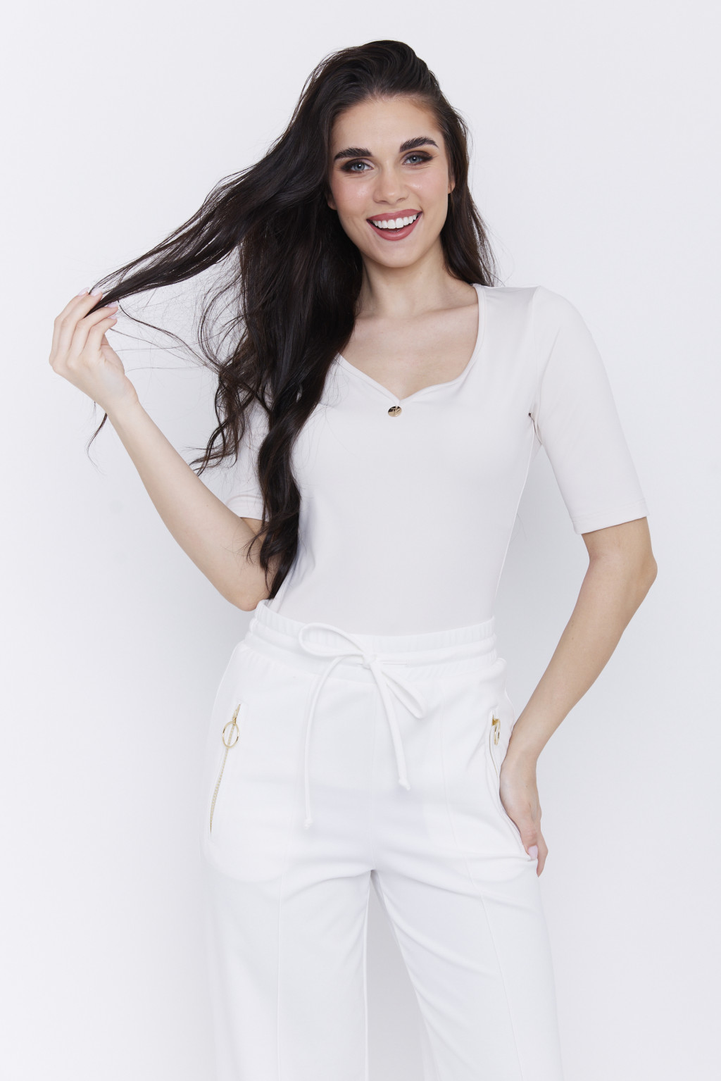 Ha a klasszikus és hétköznapokban is elegáns, nőies vonal mellett tennéd le a voksod. Testhezálló fazonú póló. Rollni pánttal ívelt nyakrész díszíti. Letisztult és nőies fazon, a hétköznapokon farmerrel, az alkalmakon elegáns szoknyával/nadrággal viselve tökéletes választás. Polyamid anyagból készítjük, ami egy rugalmas pólóanyag, amelynek van tartása.