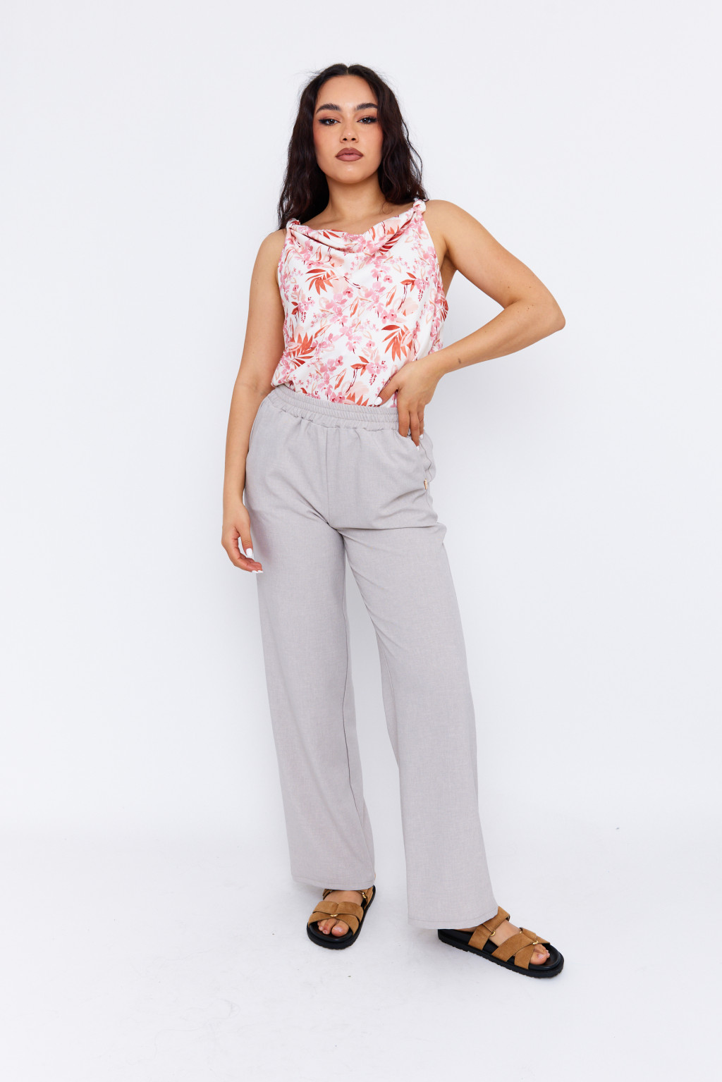 TIERA women's sleeveless top with tie straps and draped neckline – patterned