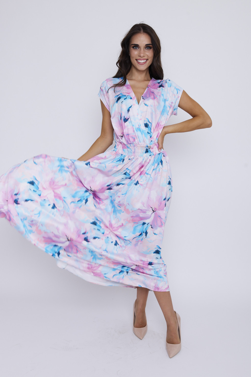 A MAITRE női ruha tökéletes választás a nyári napokra. Átlapolt felsőrészének köszönhetően nőies dekoltázst biztosít, miközben a gumírozott derékrész kényelmes illeszkedést nyújt. Légies, lenge szabásvonala és a látványos, trópusi mintázat eleganciát és frissességet kölcsönöz a megjelenésnek. Különleges eseményekre, de akár hétköznapi viseletre is ideális.