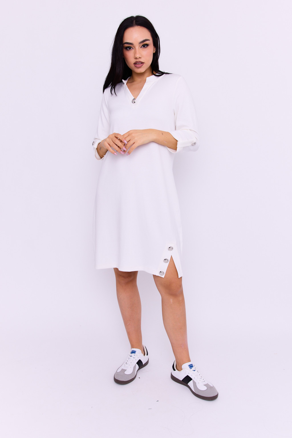 Egyenes szabású, oversized tunikánk egy igazi könnyed termék, ami a hétköznapok stílusos és kényelmes kulcsdarabja! Díszgombokkal és kivágásokkal tettük még különlegesebbé.