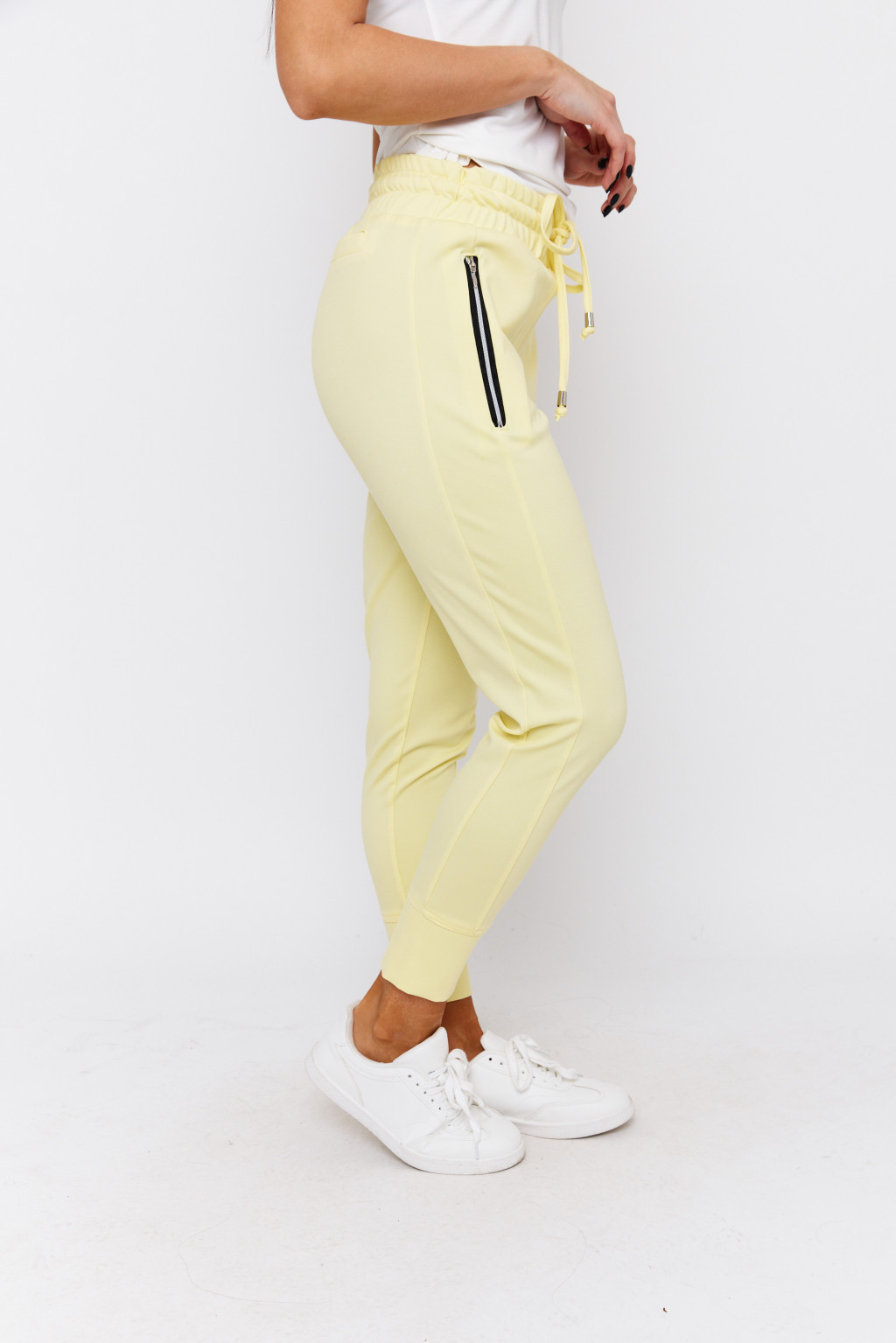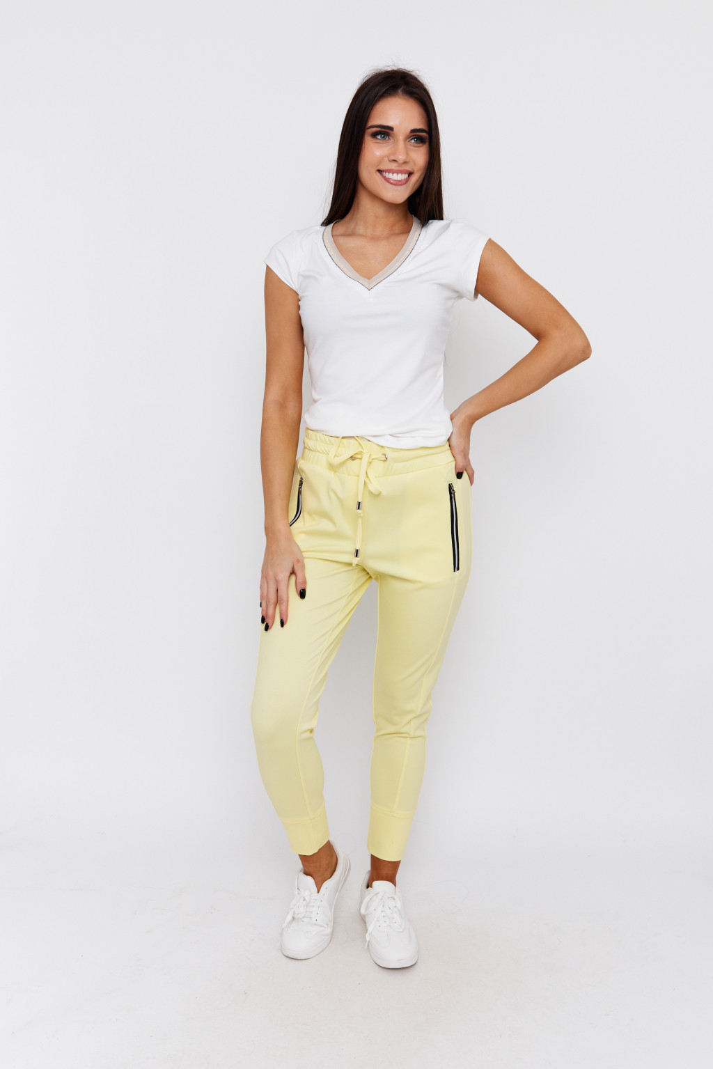 A NANZIE női nadrág tökéletes választás a kényelmet és a modern megjelenést előnyben részesítők számára. A sportos fazonú nadrág lábszárán rugalmas széles passzé kialakítás található, amely kiemeli a formát és biztosítja a tökéletes illeszkedést. A kontrasztos cipzárral ellátott zsebek nemcsak stílusos megjelenést adnak, hanem praktikus tárolási lehetőséget is kínálnak. A húzózsinóros derékpánt révén egyéni igény szerint állítható, így ideális választás hétköznapi viseletként vagy aktív napokra is.