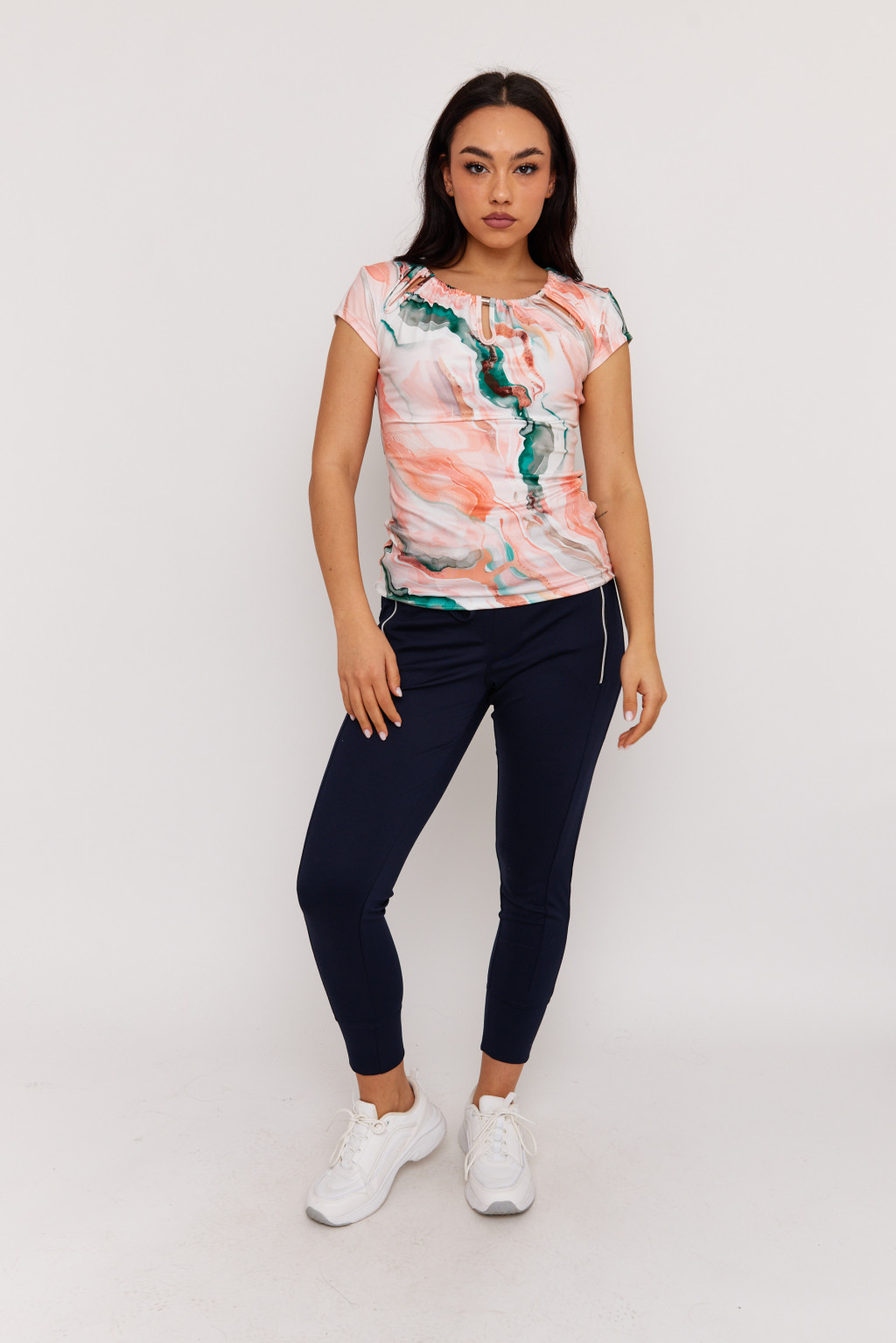 Bogyós női póló, kerek nyakú női felső bogyókkal és kivágással,mintás,XL,Tara x Viktori