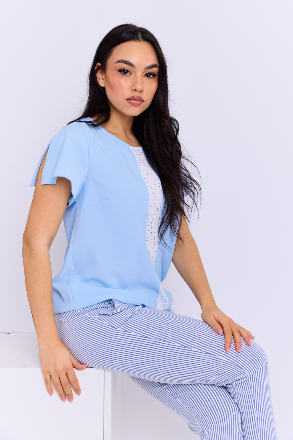 Tallula női tunika csipkebetéttel és gumis aljjal – elegáns, rövid ujjú felső,kék,XL,Tara X Viktori