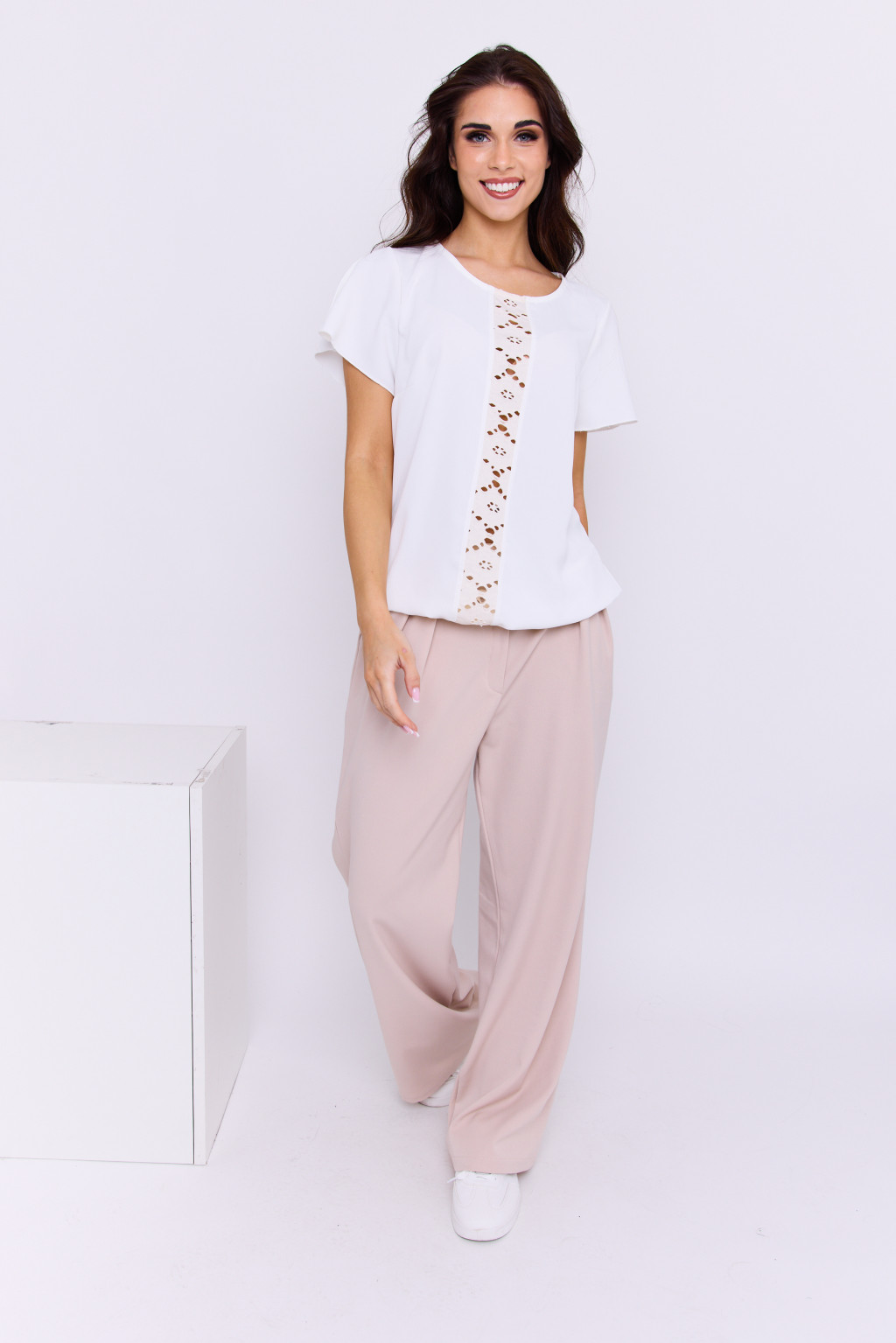 Tallula női blúz csipkebetéttel és gumis aljjal – elegáns, rövid ujjú felső,ekrü,M,Tara X Viktori