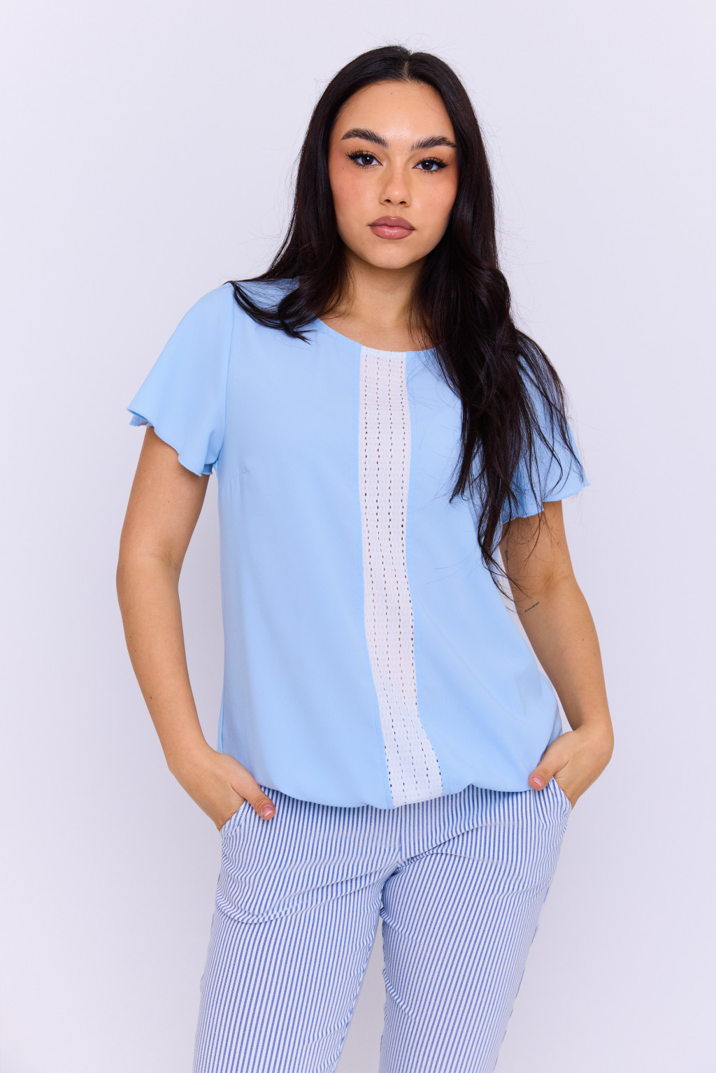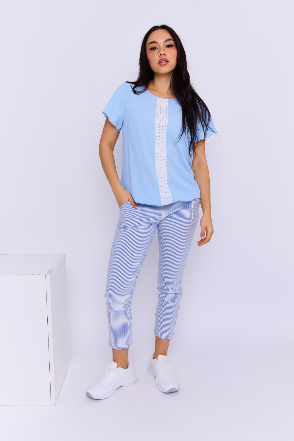 Tallula női blúz csipkebetéttel és gumis aljjal – elegáns, rövid ujjú felső,kék,S,Tara X Viktori