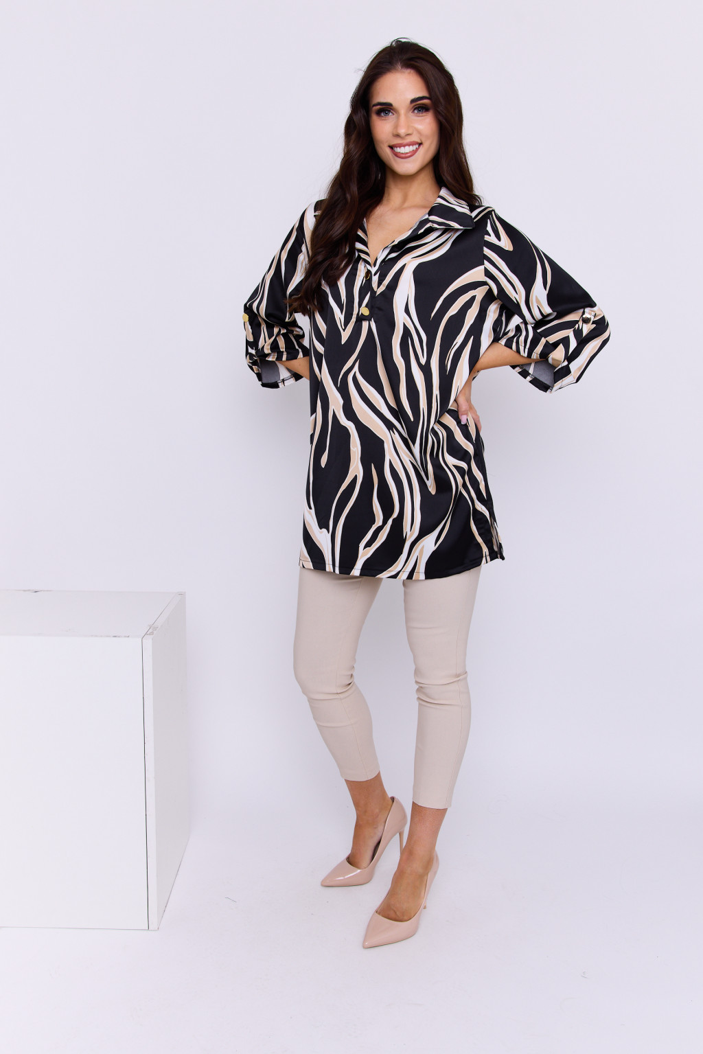 Henriett Women's Tunic with Collar and Button-Front Design in Elegant Print