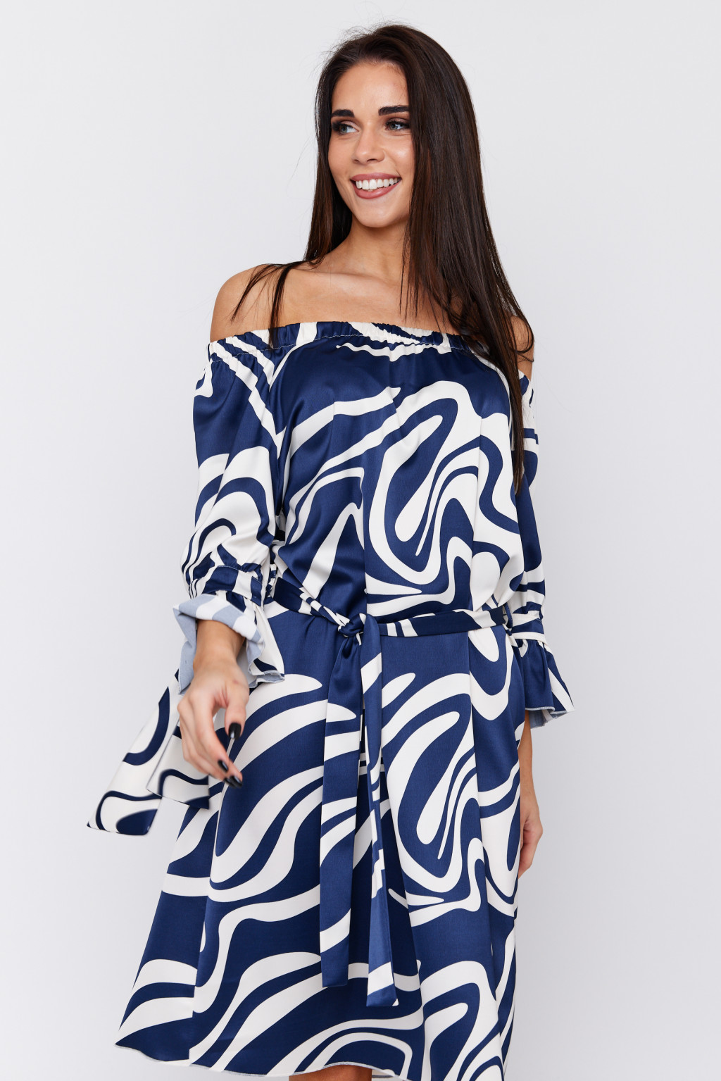 Fanni női ruha, váll nélküli, fodros ujjú ruha,mintás,M,Tara x Viktori, Curve Fashion