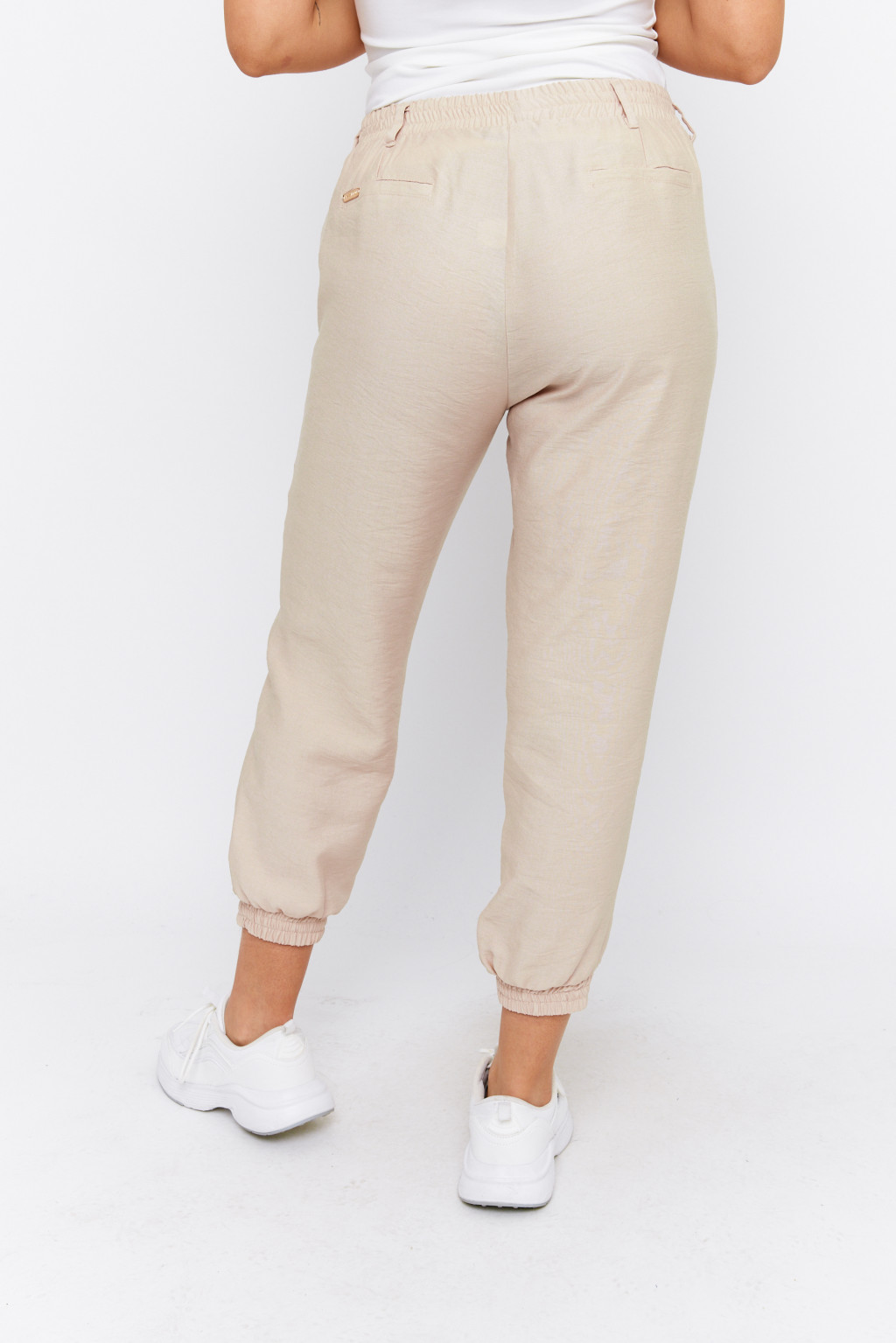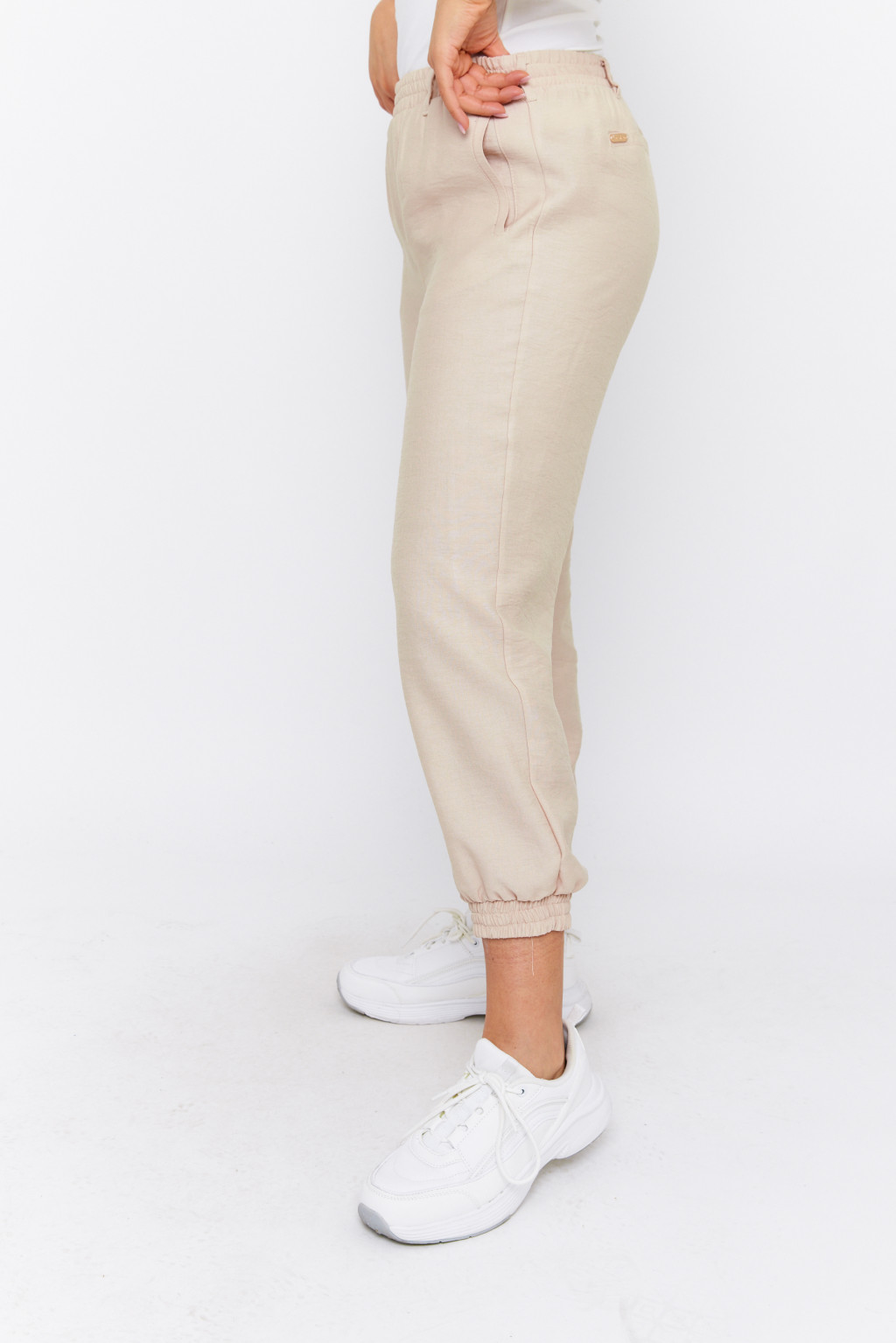 Elvira Women's Linen-Effect Jogger Pants – Comfortable Elastic Waist Summer Trousers with Pockets