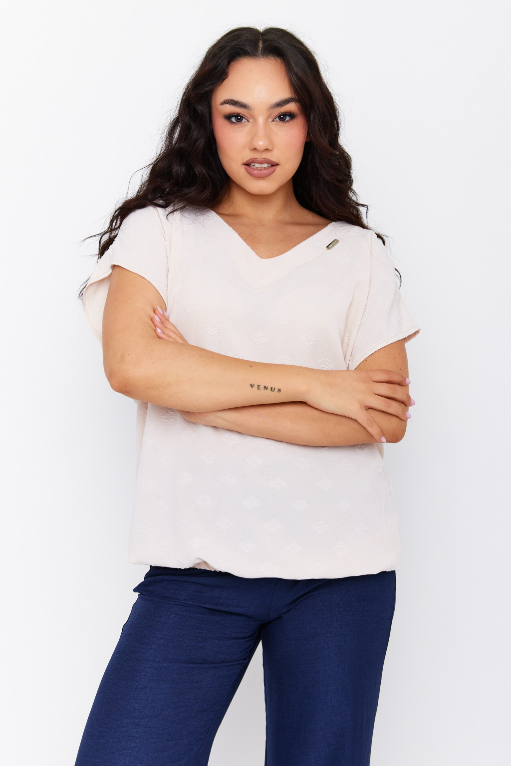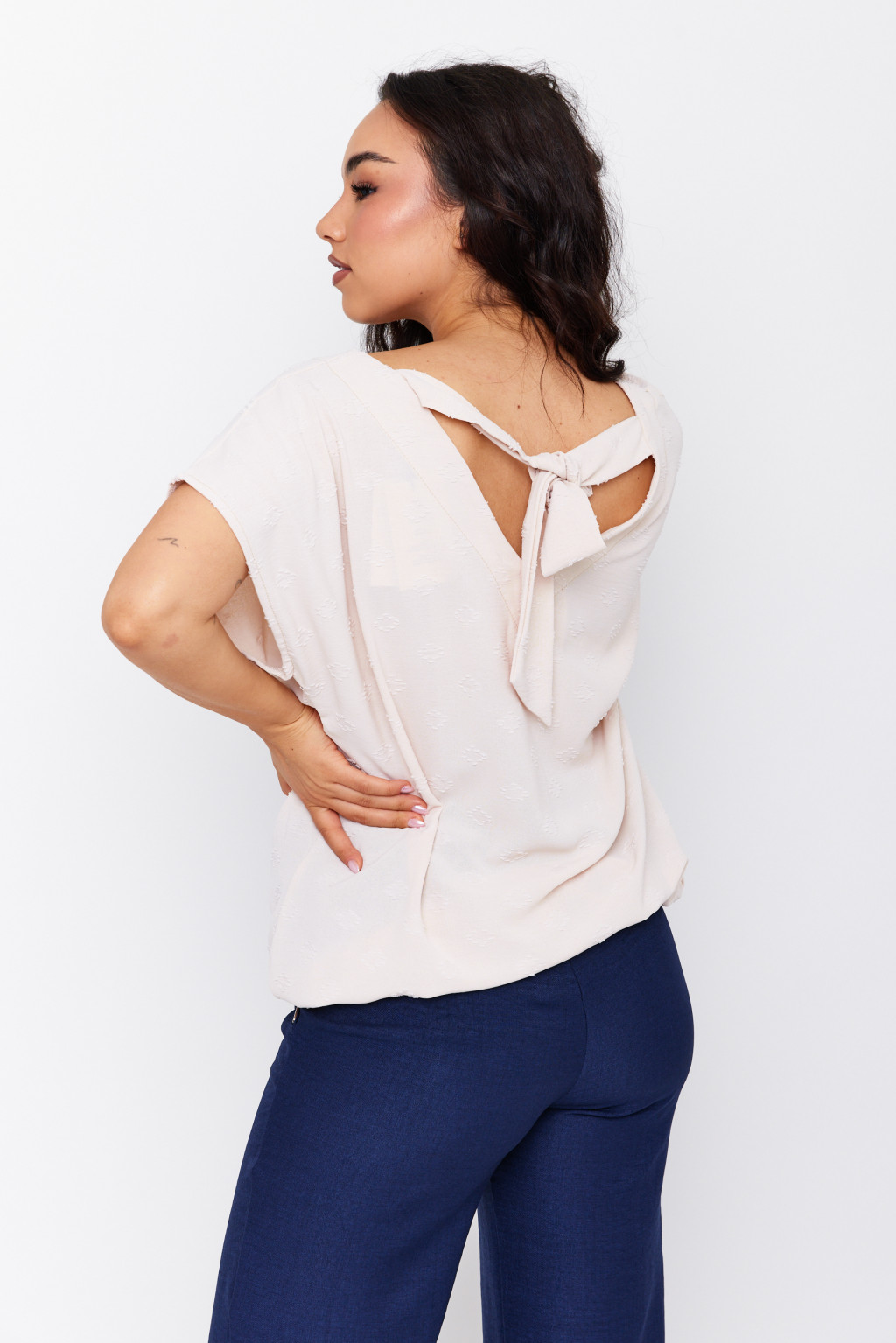 KATY women's blouse – V-neck, tie-back, loose fit crinkled hem blouse