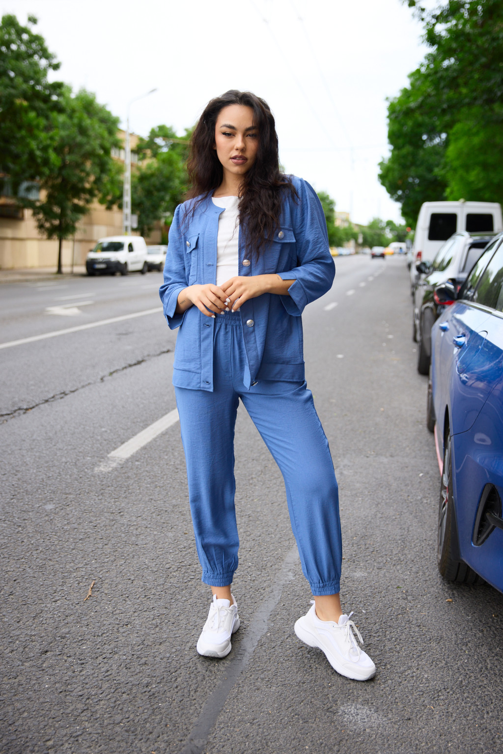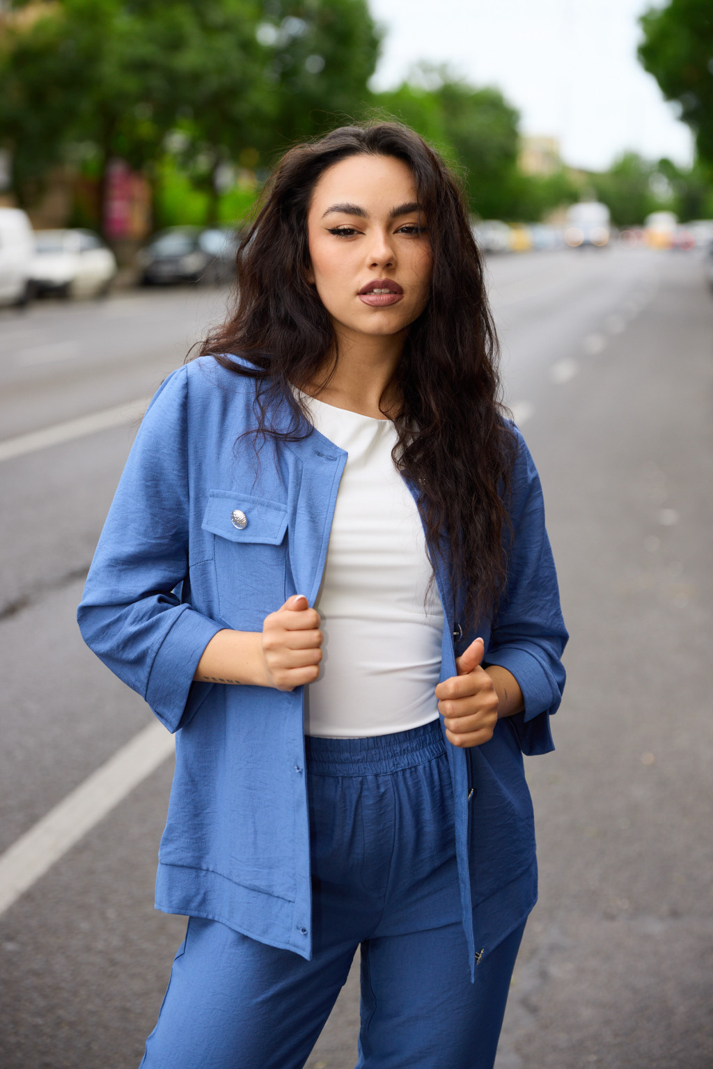 Az ABRIELLE női blézer stílusos és sokoldalú darab, amely remekül kombinálható mind elegáns, mind lazább szettekkel. A hat díszgombos kialakítás és a mellzsebek klasszikus megjelenést biztosítanak, míg a háromnegyedes ujjhossz kényelmes viseletet garantál a tavaszi–nyári szezonban. Karcsúsított szabása és kerek nyakkivágása nőies sziluettet formál, miközben kényelmes és légáteresztő anyagból készült. Elérhető több színben.