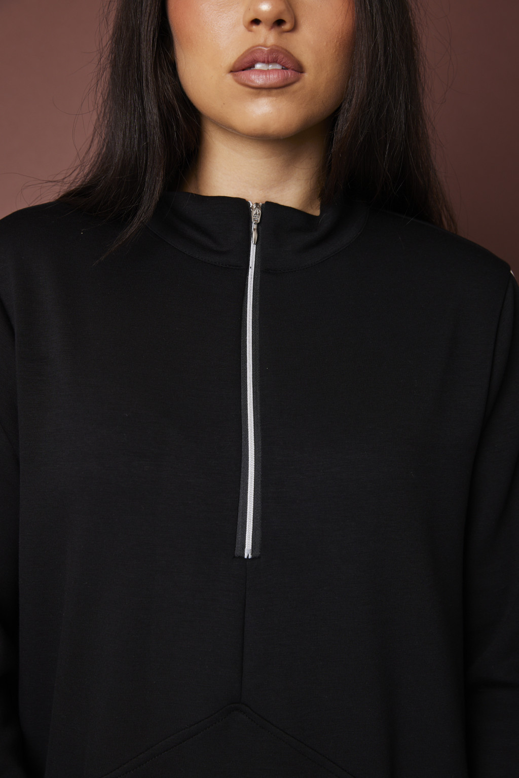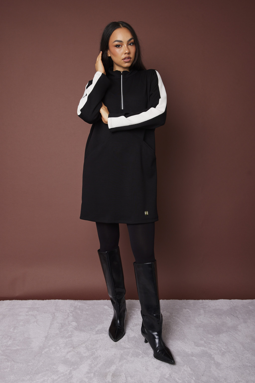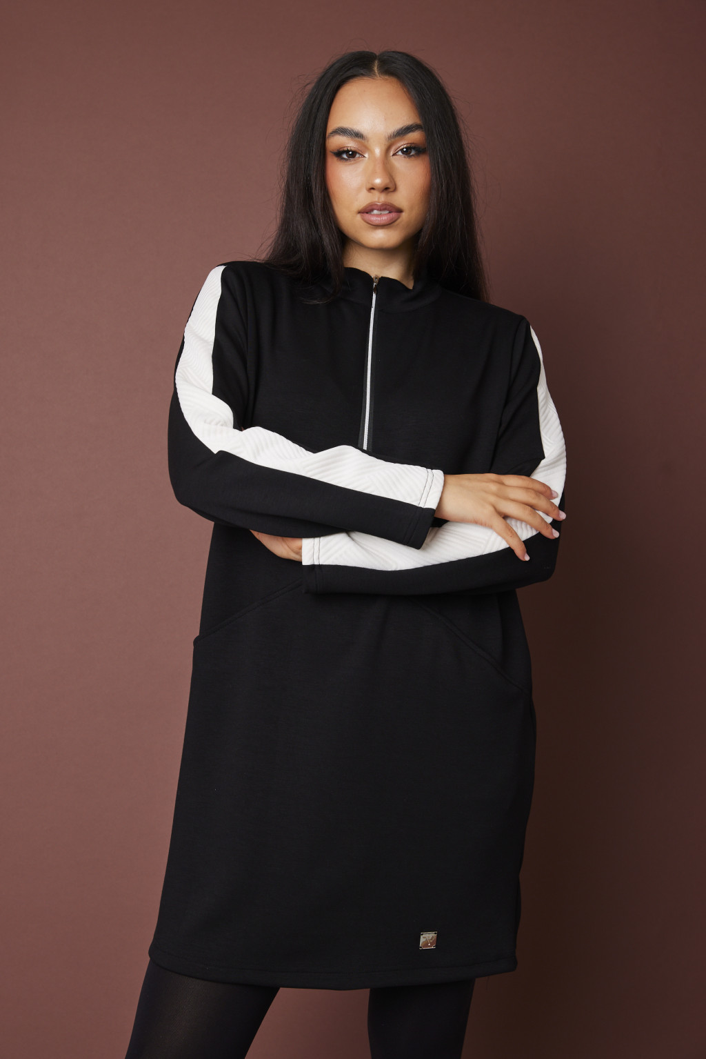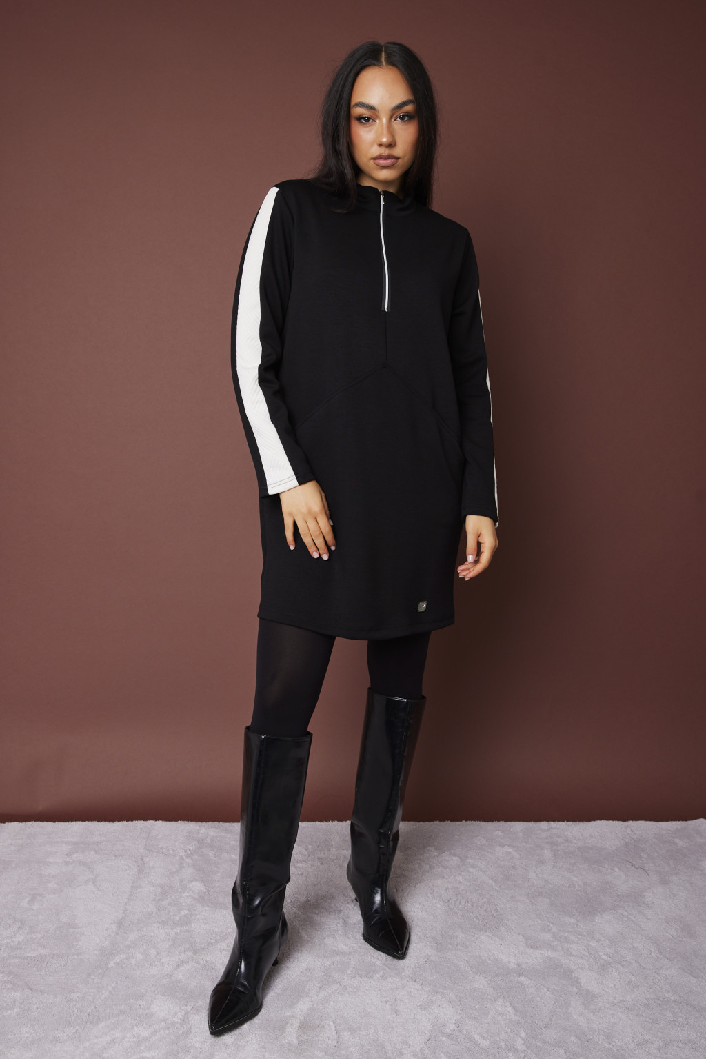KOZETT női tunika cipzáros, magas nyakú fazonban, kontrasztos ujjbetéttel,fekete,L-XL,Tara X Viktori