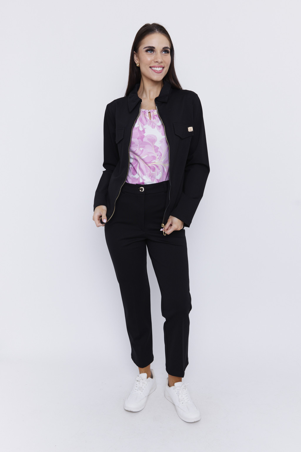 A SHAELYN női nadrág letisztult szabásával és elegáns megjelenésével sokoldalúan kihasználható darab a gardróbban. Az egyenes szárú fazon klasszikus vonalvezetést biztosít, amely előnyösen formálja az alakot és időtálló megjelenést ad.