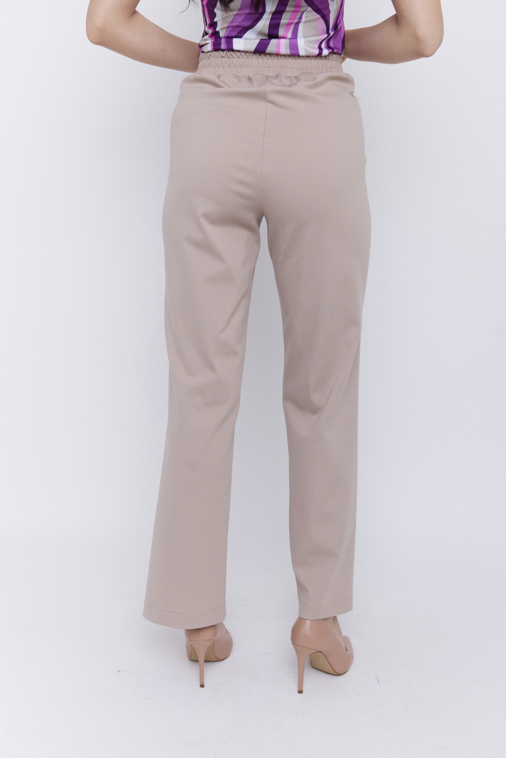 PEARL women’s tailored pants with pressed crease and gold decorative buckle – elastic back waist trousers