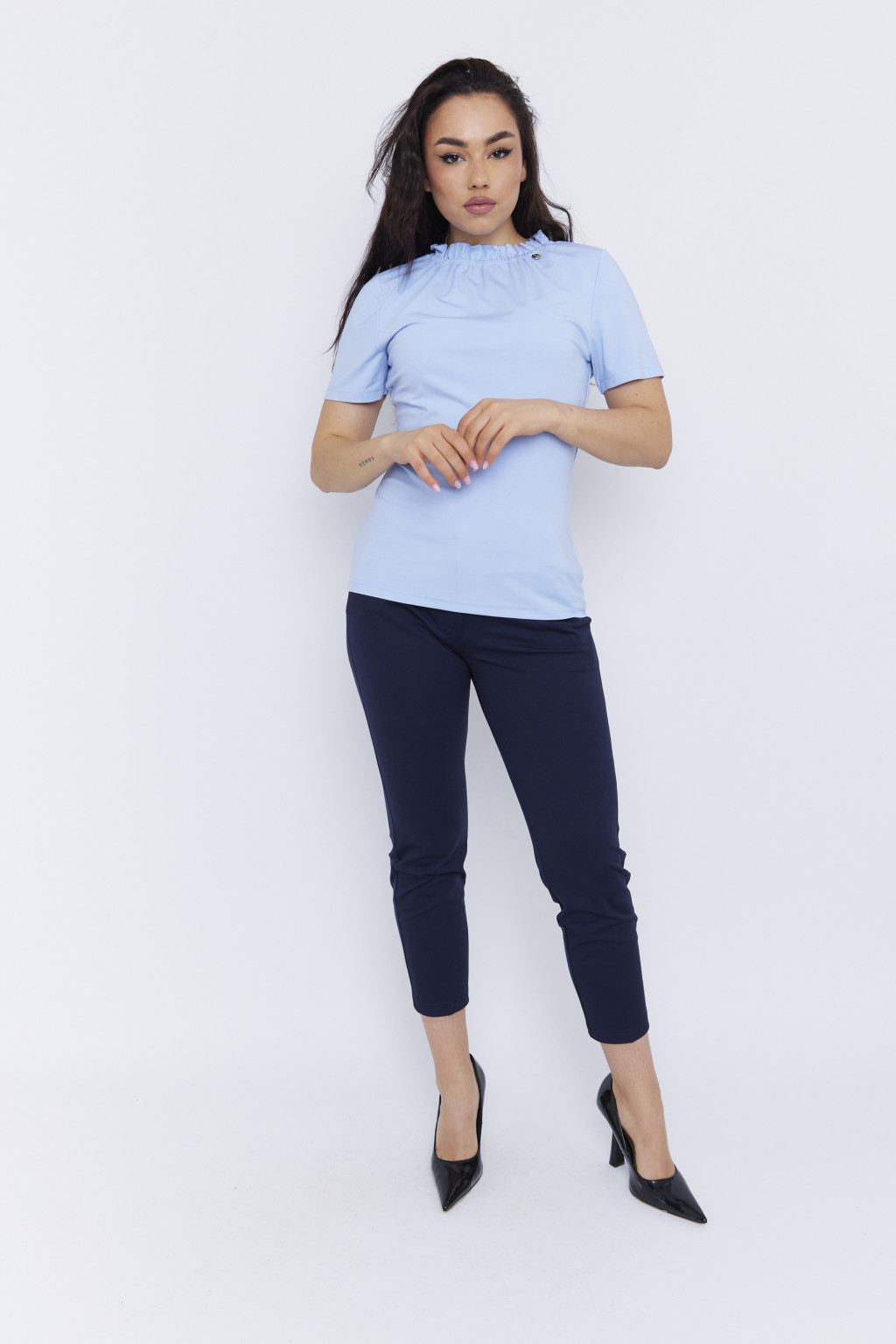 BONA-női-póló-gumis-nyakú, felső,kék,S,Tara X Viktori