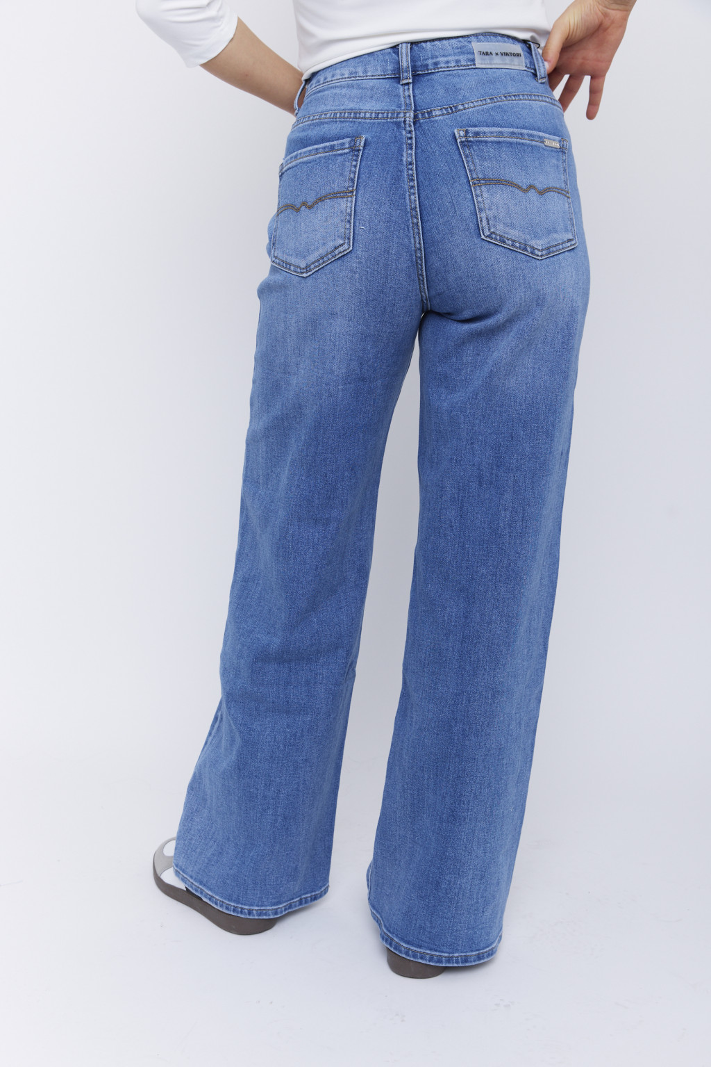 Női bő szárú farmer nadrág – magas derekú, egyenes fazonú női farmer,XL,Tara X Viktori