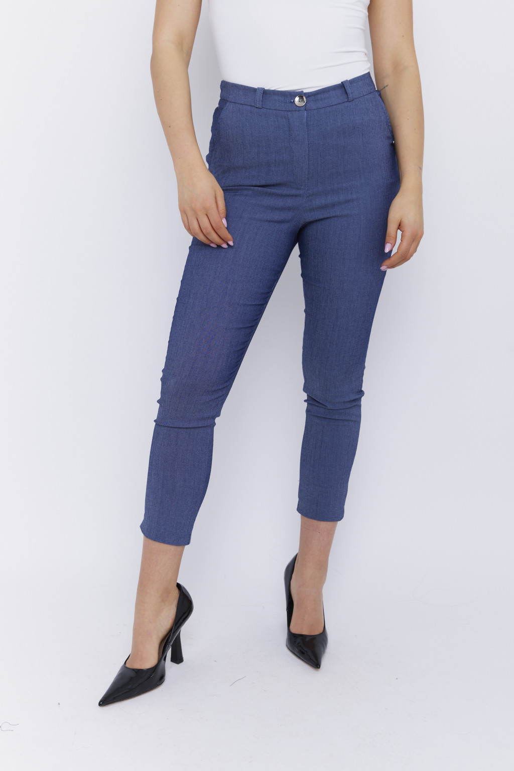 ZOYA női nadrág, magas derekú, egy gombos nadrág zsebekkel és övtartóval, kék,XL, Tara x Viktori