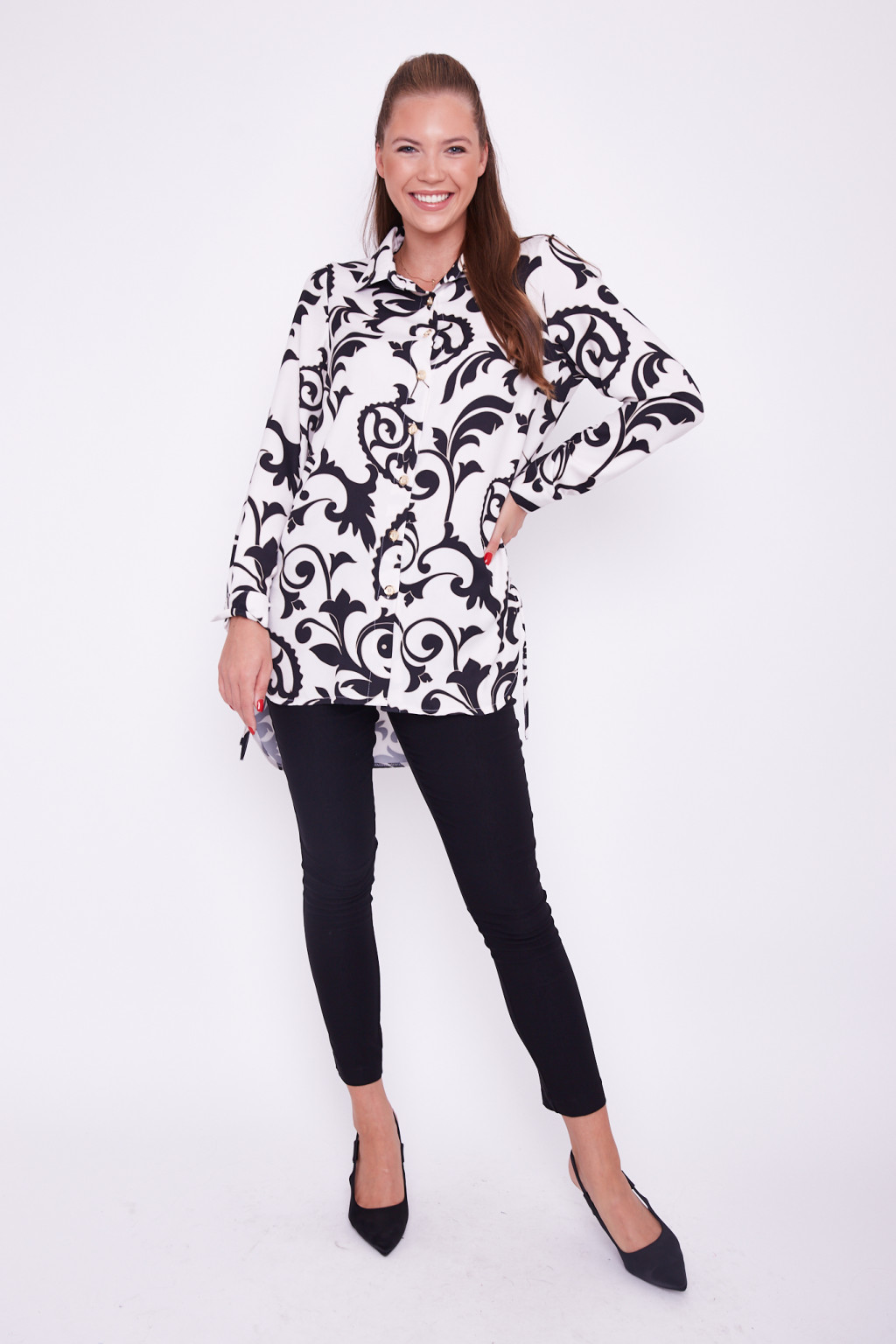 Leona women's tunic, collared oversized tunic with bow, Tara x Viktori, Curve Fashion