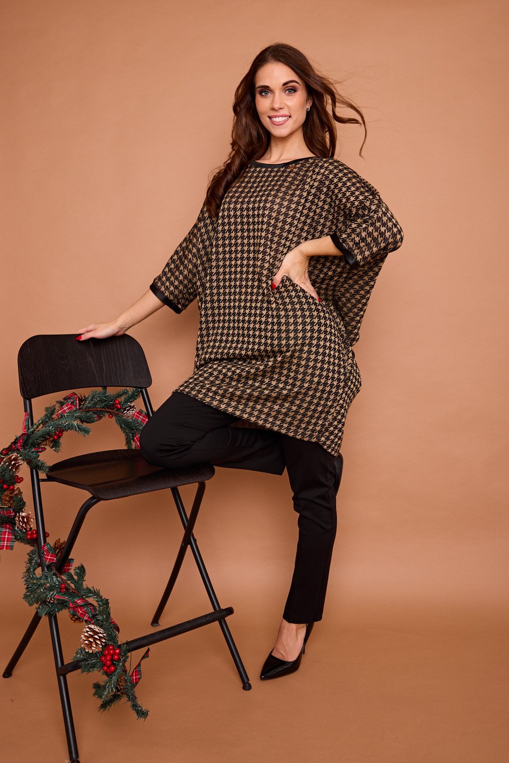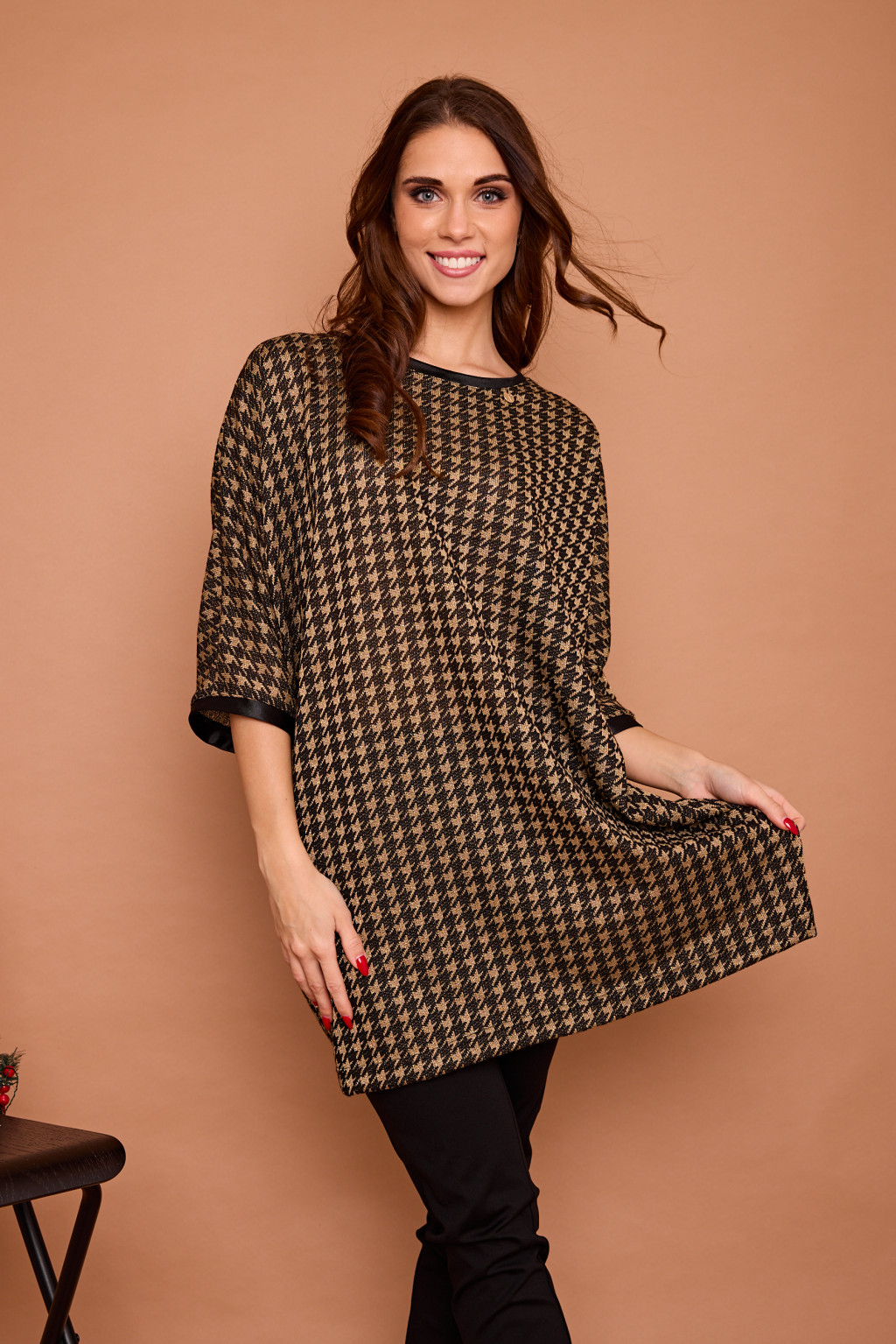 Feodora női tunika 1 méretes filmnyomott tunika,Tara x Viktori,arany-fekete,Curve Fashion