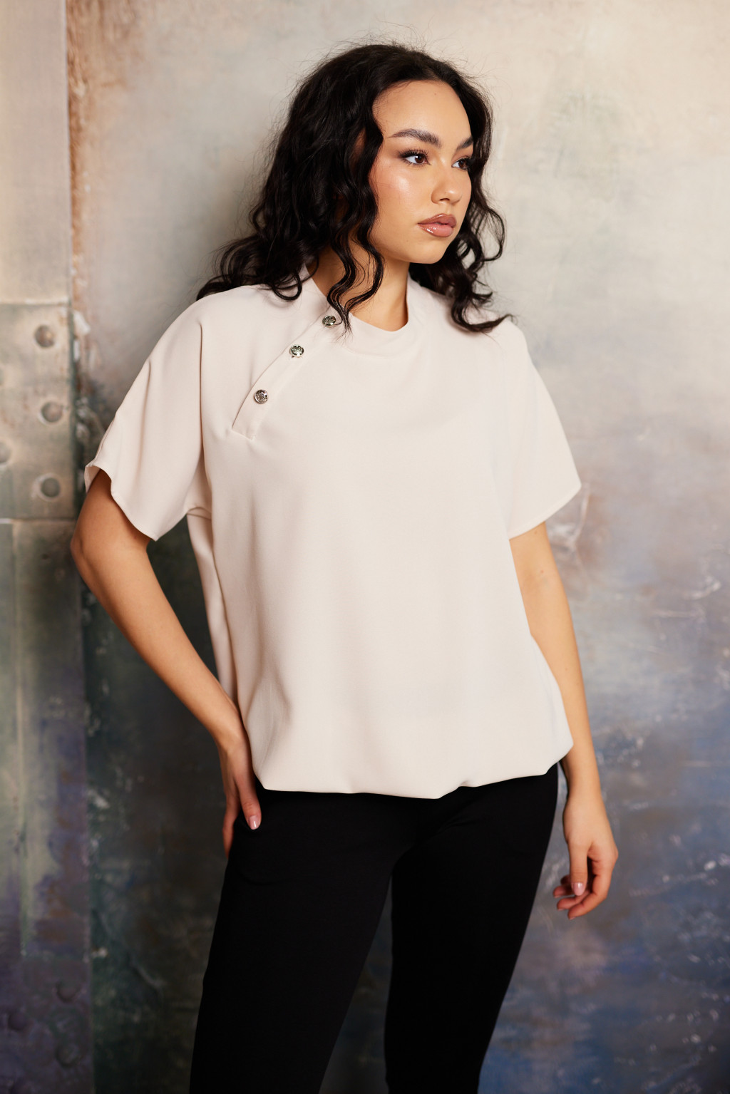 AYLA jobb oldalt gombos, állógalléros, gumis aljú blúz,bézs,M,Tara X Viktori,Curve