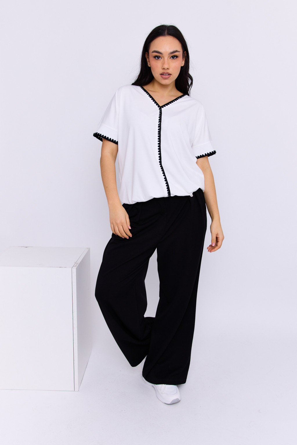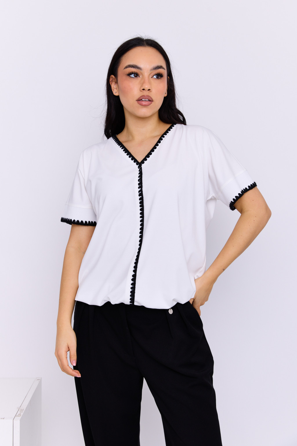 BRENDA női passzés blúz kontrasztos szegéllyel,fehér,L,Tara X Viktori,Curve