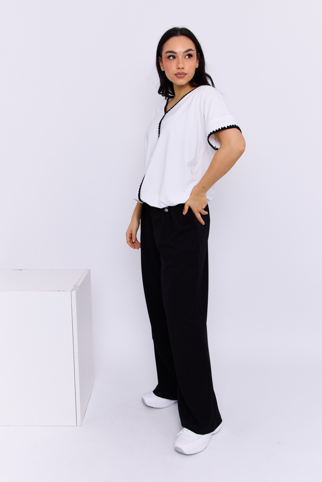 BRENDA női passzés blúz kontrasztos szegéllyel,fehér,XL,Tara X Viktori,Curve