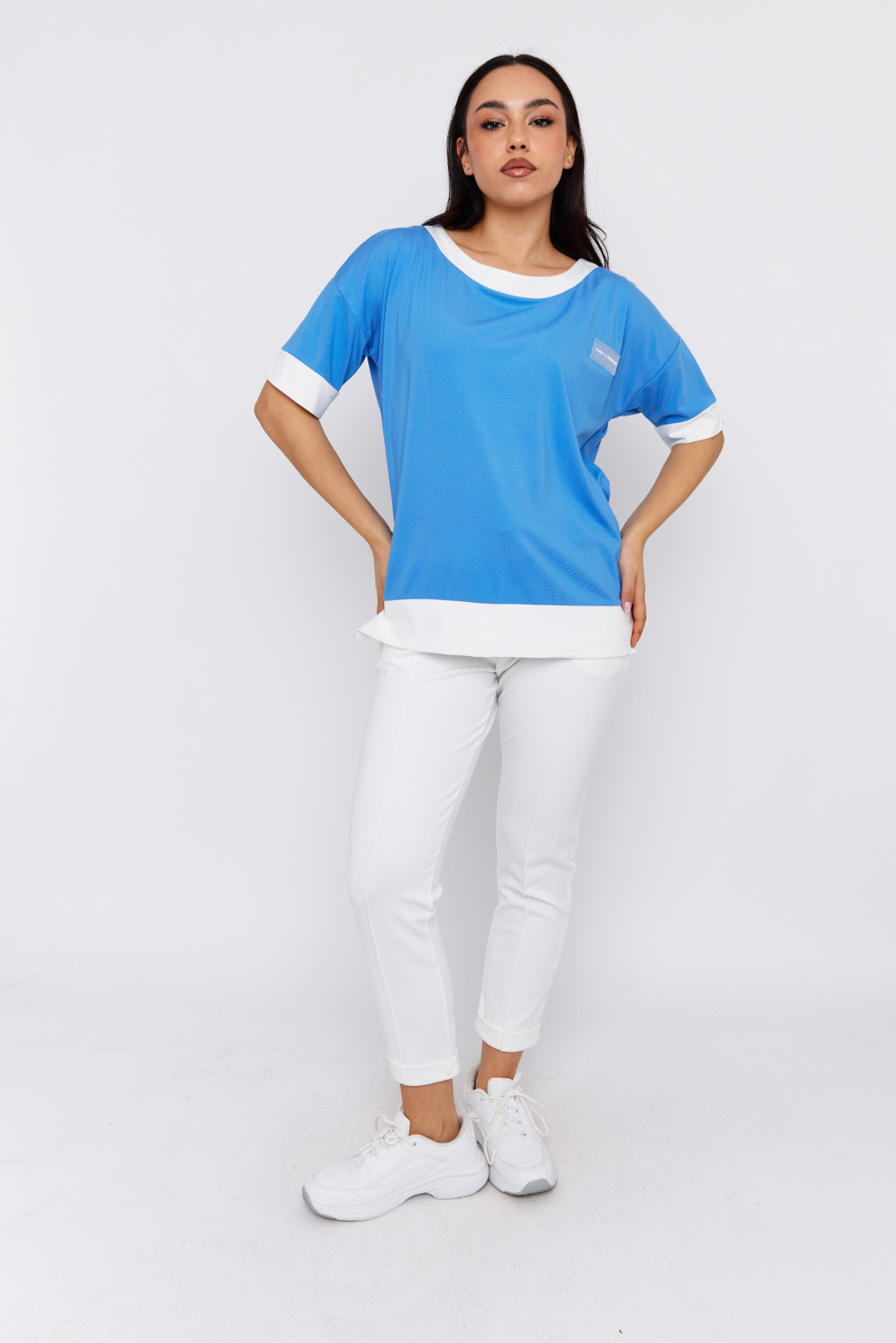BERTINA women’s short-sleeved tunic with abstract print and contrast hem