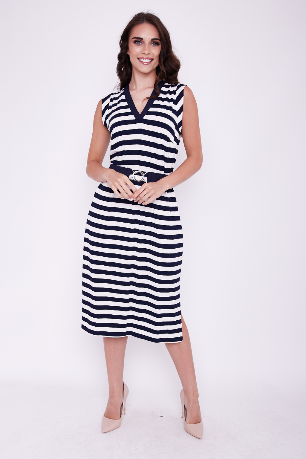 DAHNA women's sleeveless long dress with ribbed neckline and belt
