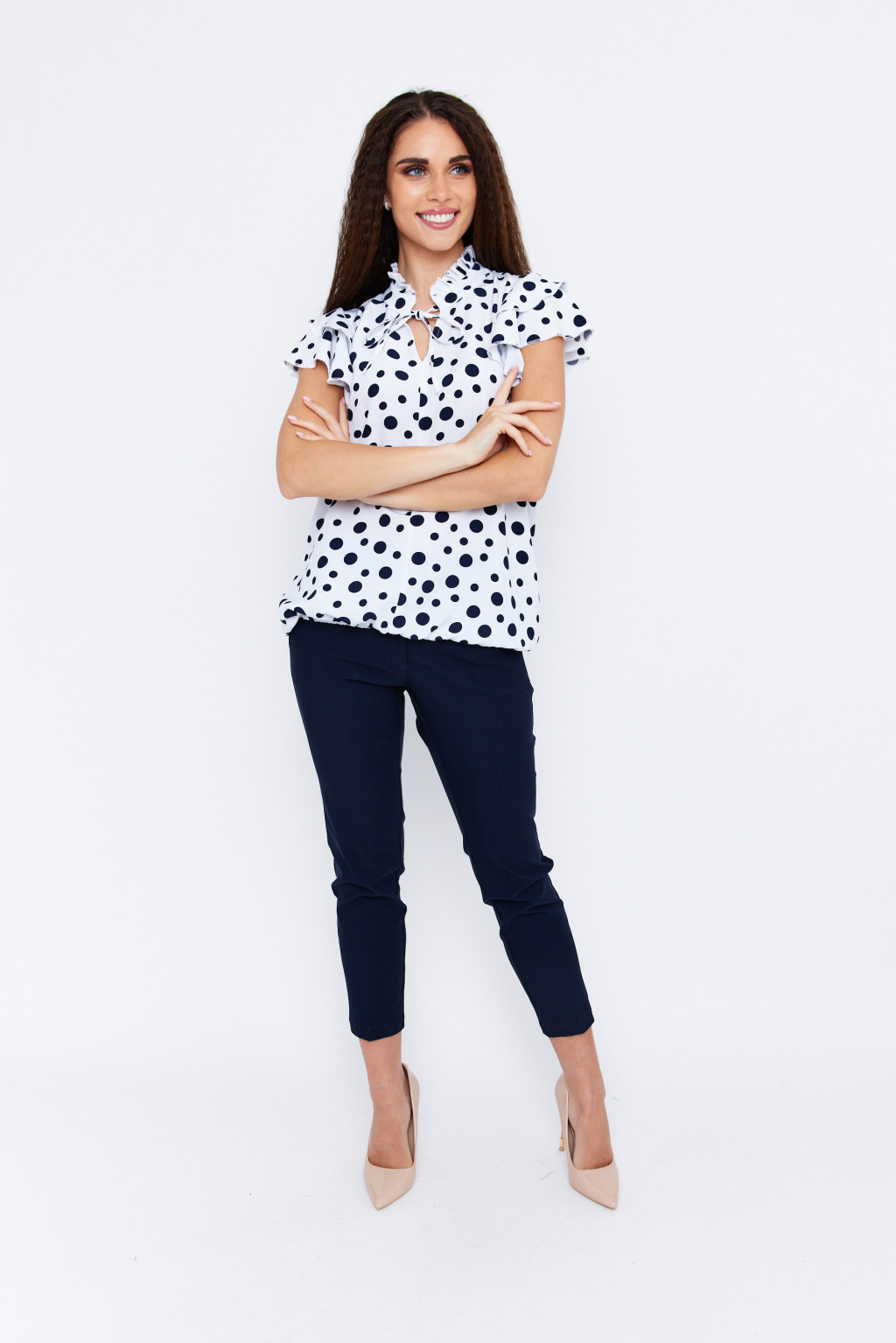 MOLLY női tunika,fodros ujjú, megkötős nyakú, gumis aljú felső,mintás,M,Tara X Viktori,Curve