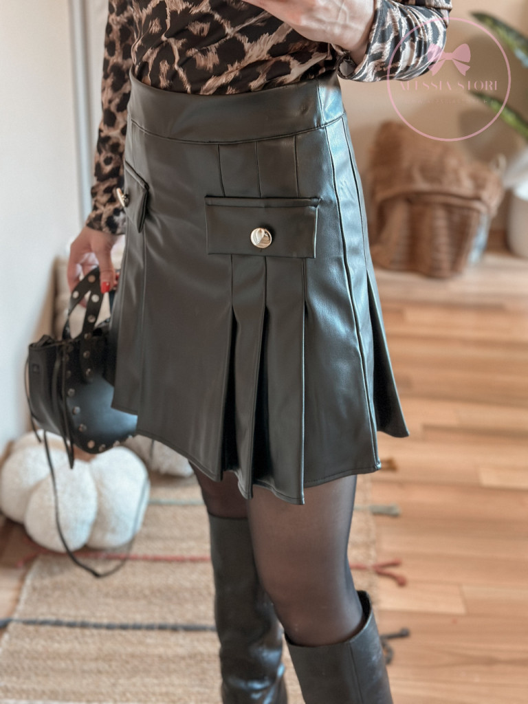 Elegáns, rakott műbőr szoknya igazán stílusos és praktikus választás! Ez a szoknya nagyszerűen kombinálható különféle felsőkkel, legyen szó elegáns vagy hétköznapi szettekről.