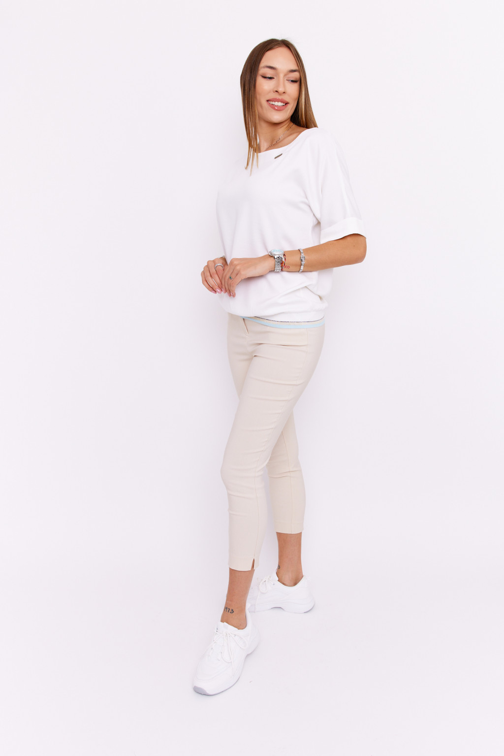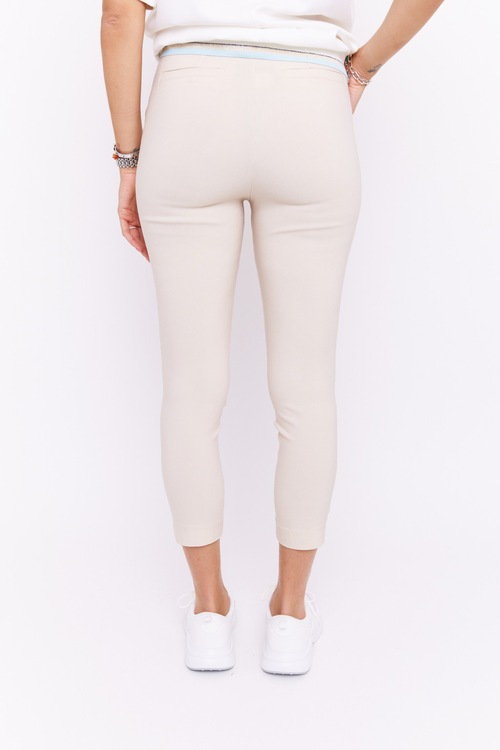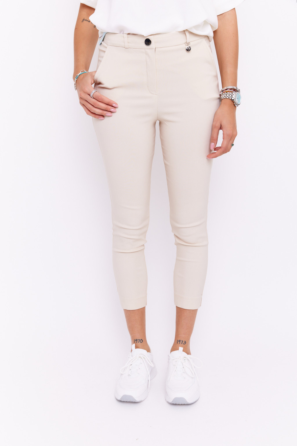 ZOYA női nadrág, magas derekú, egy gombos nadrág zsebekkel és övtartóval, bézs, S, Tara x Viktori