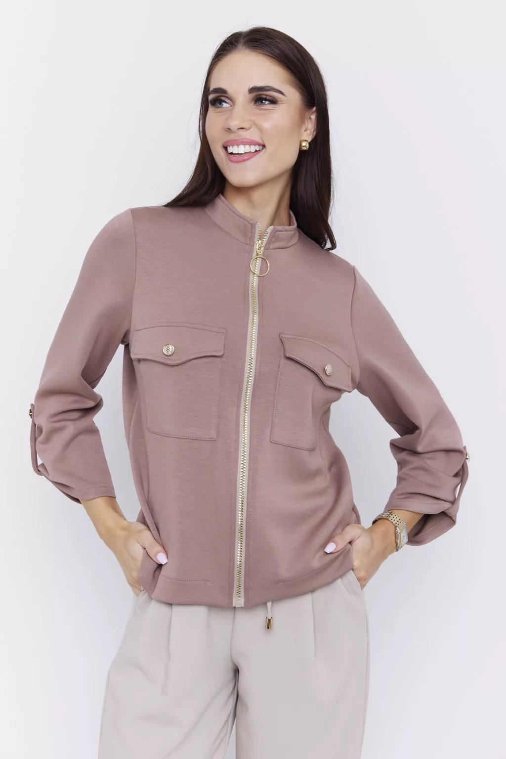 LUCINA női zakó – cipzáras, zsebes, klapnis ujjú fazon,XL, barna,Tara X Viktori