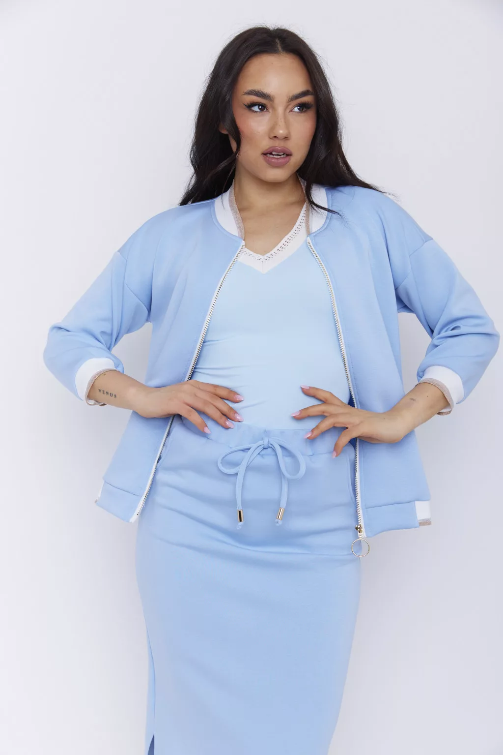 CORNELIA női zakó – cipzáras, passzéval díszített modern zakó,világoskék,S,Tara X Viktori