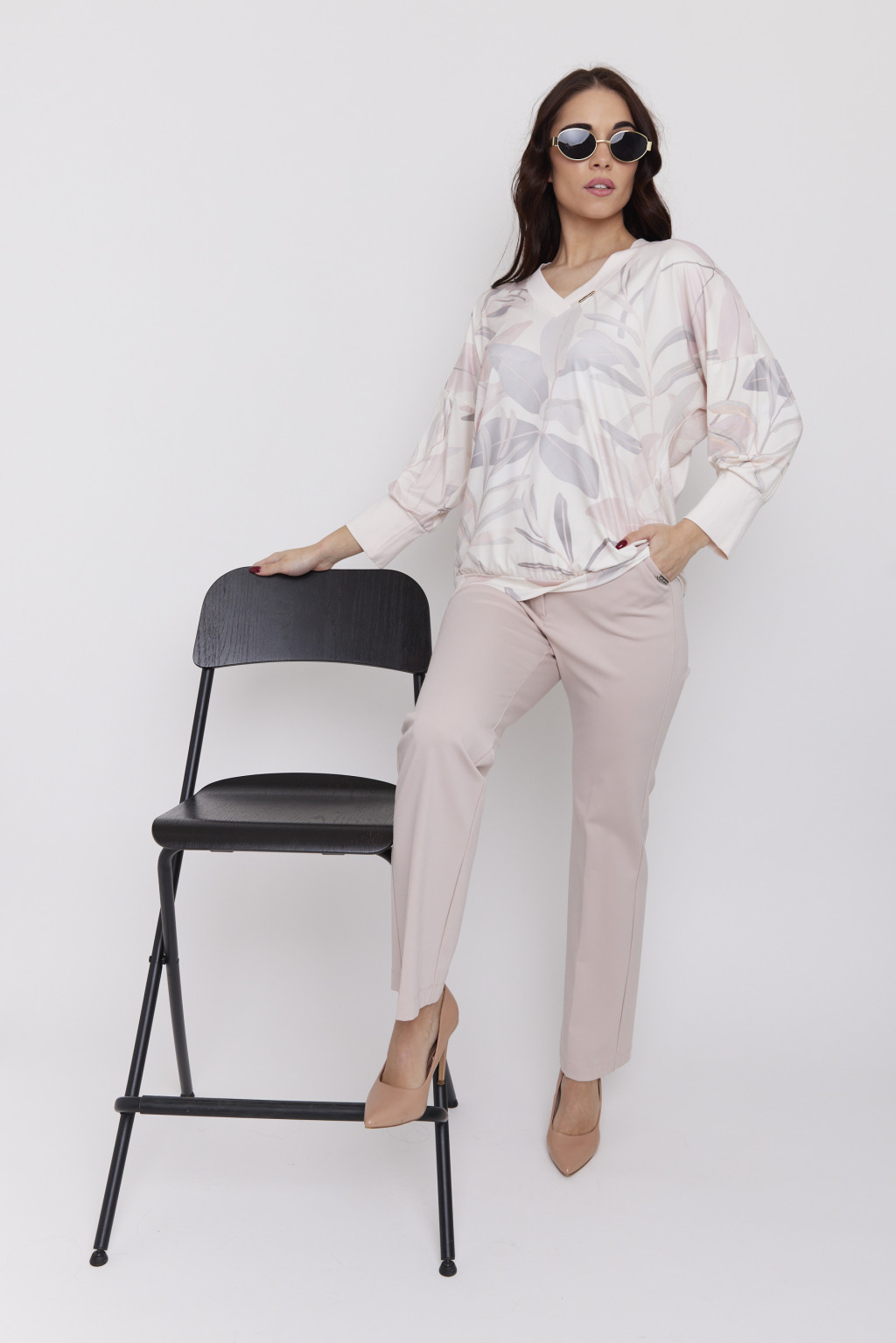 CHANTIL női felső – V-nyakú, passzés ujjú, bővebb szabású,mintás,XL,Tara x Viktori,Curve Kollekció